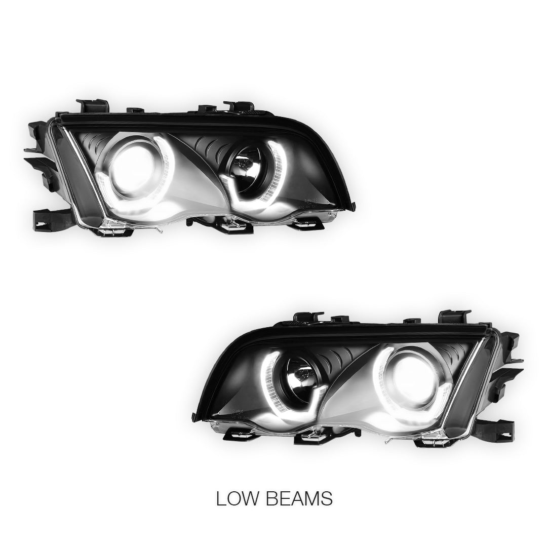 BMW 3-Series E46 (1999 - 2001) LED 3D Halo DRL Projector Headlights LH + RH