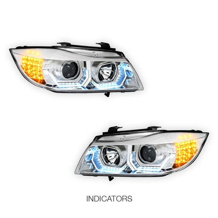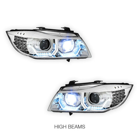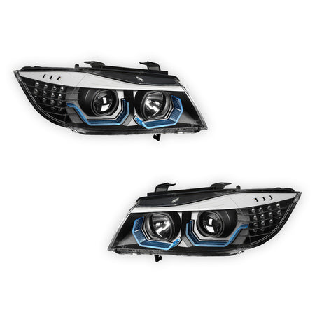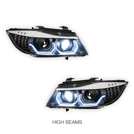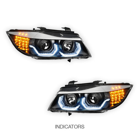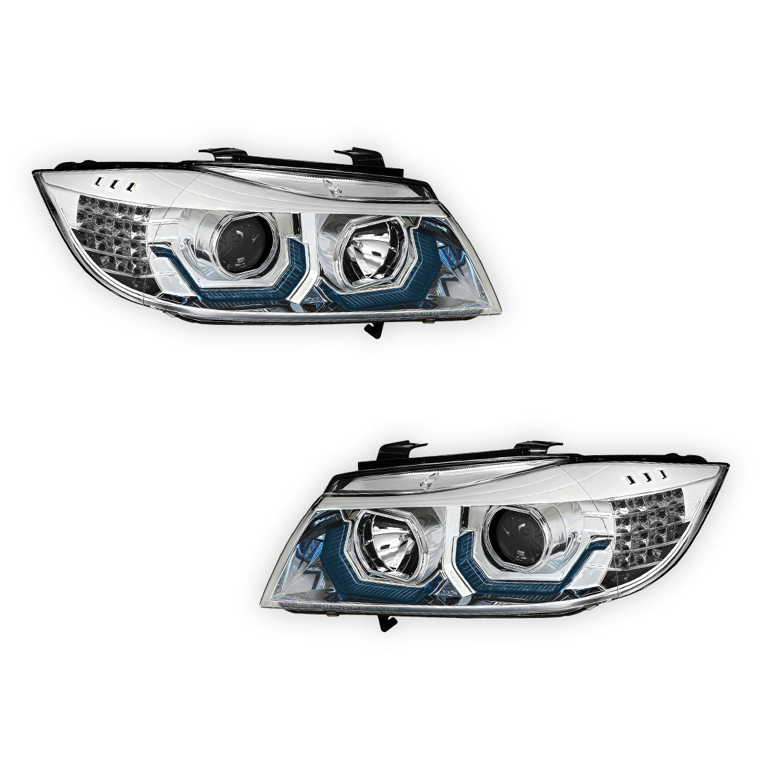 BMW 3-Series E90 (2009 - 2012) LED 3D Crystal U-Halo Headlights LH + RH