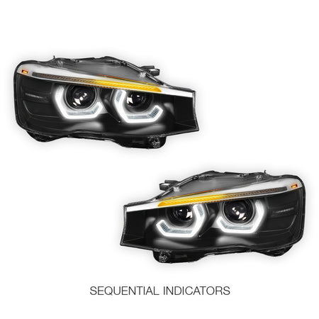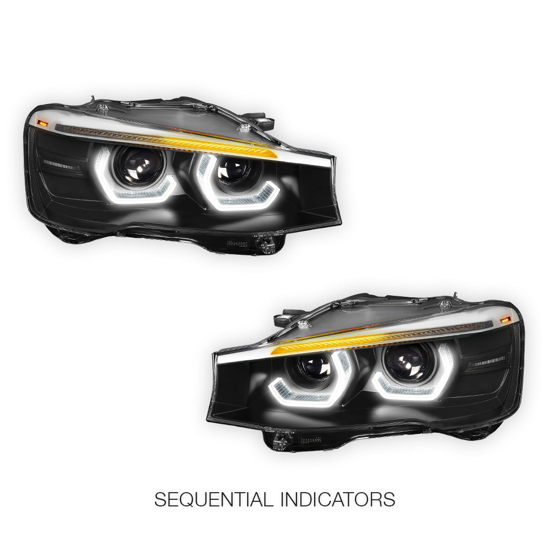 BMW X-Series (2015 - 2018) Full LED Sequential Turn Signal Quad Halo Projector Headlights LH + RH