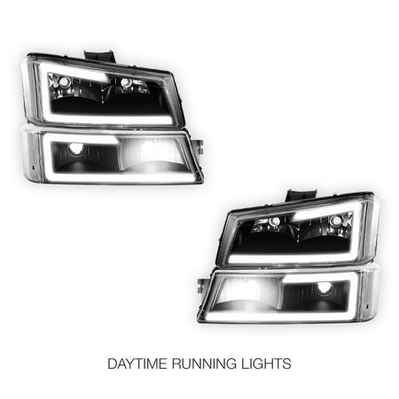 Chevrolet Avalanche 2500 LS / LT (2003 - 2006) LED DRL Bar Headlights LH + RH