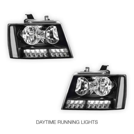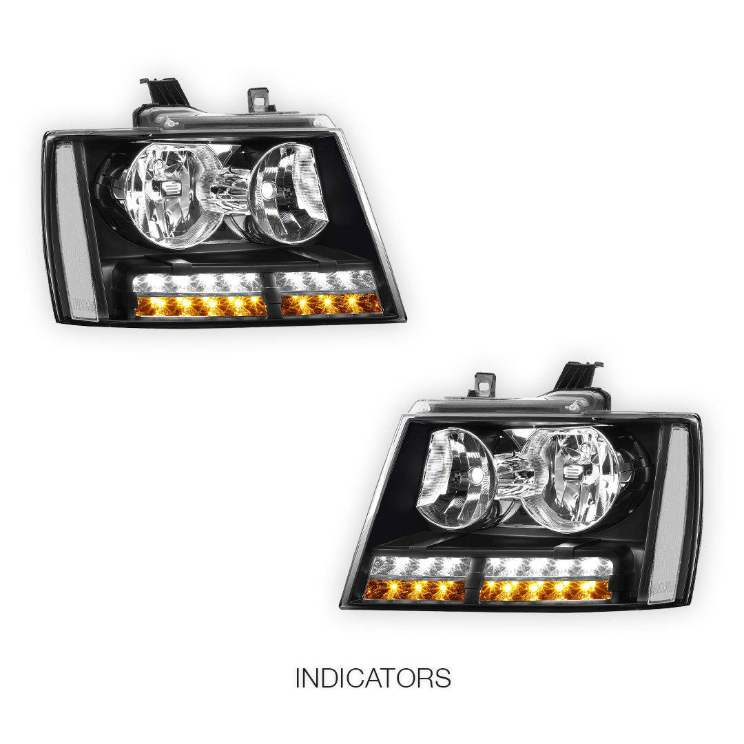 Chevrolet Avalanche LS / LT / LTZ (2007 - 2013) LED DRL Turn Signal Headlights LH + RH