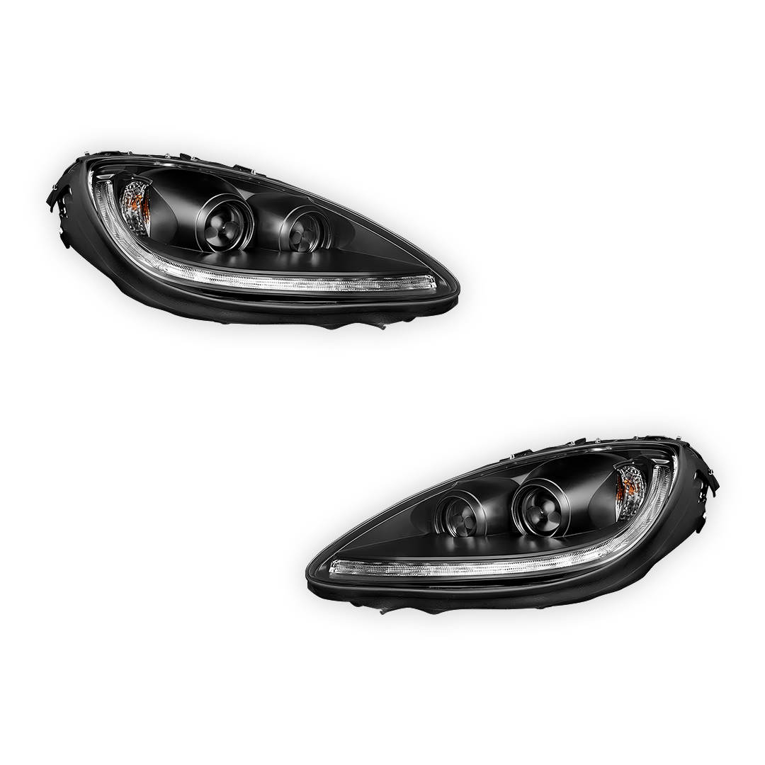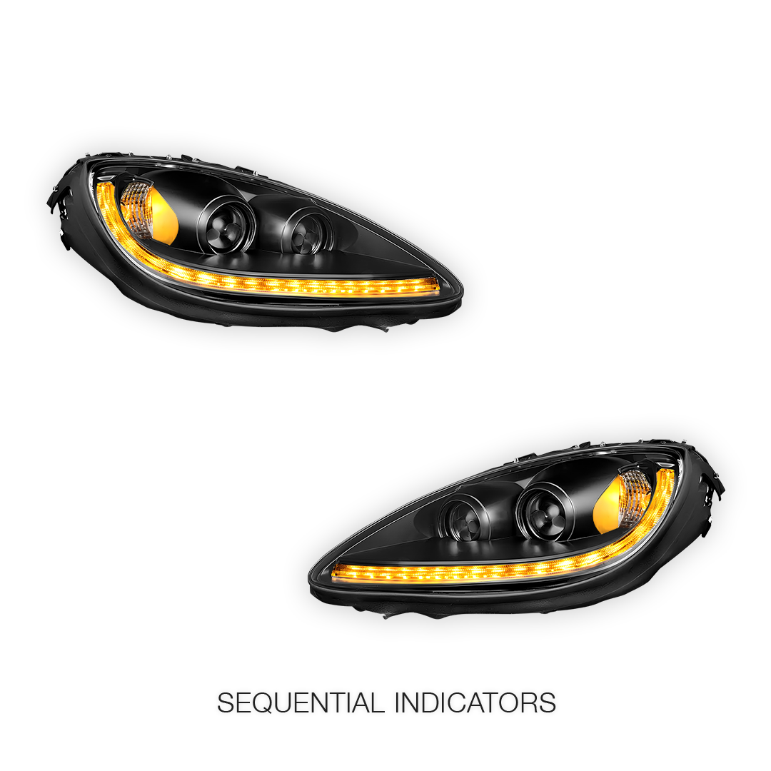 Chevrolet Corvette C6 (2005 - 2013) Sequential LED DRL Halogen Switchback Black Headlights LH + RH