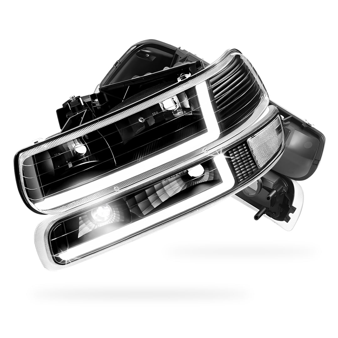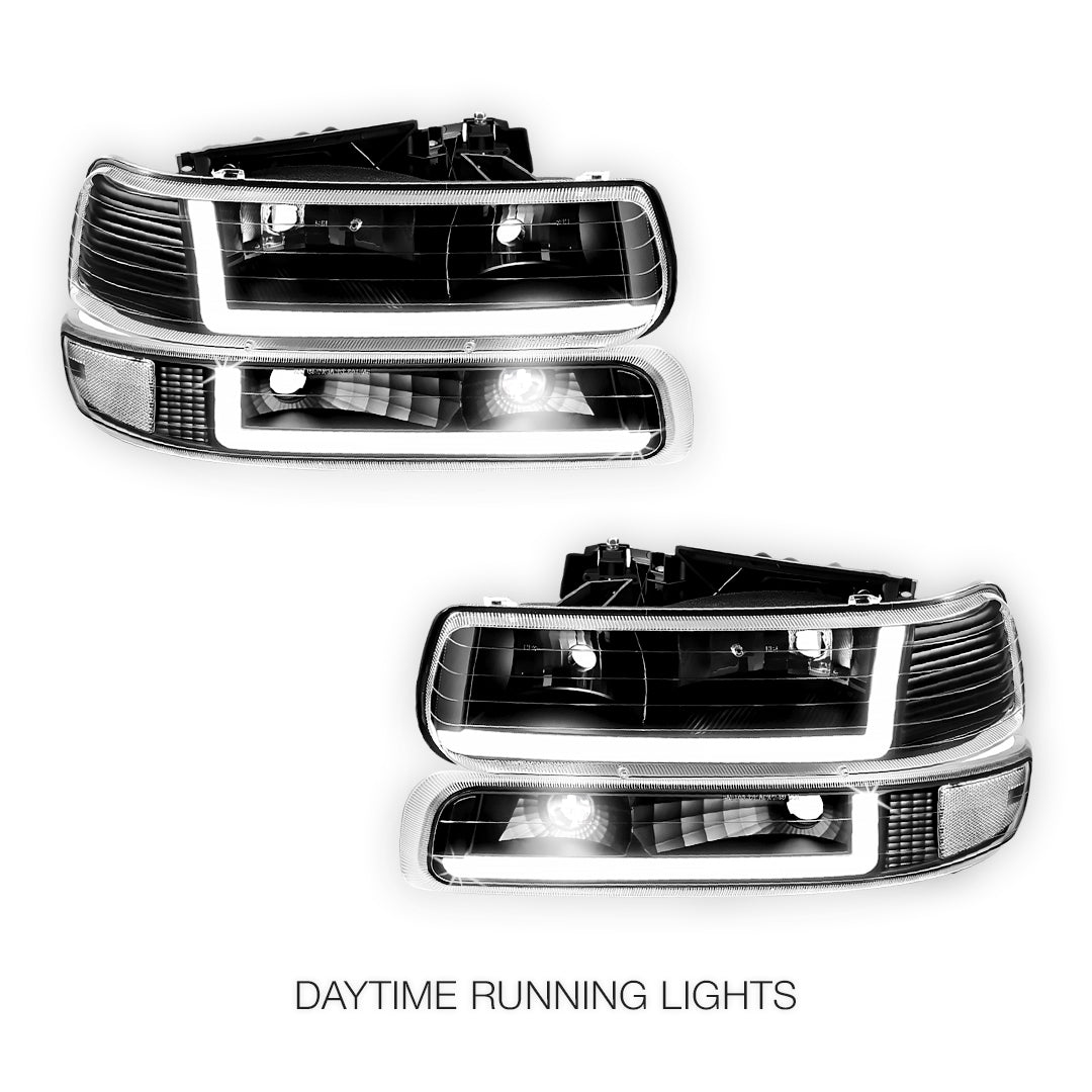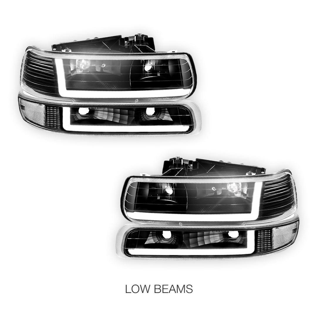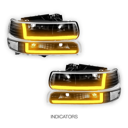 Chevrolet Silverado 1500 HD LS / LT (2001 - 2002) Dual LED L-Pattern Switchback Headlights LH + RH