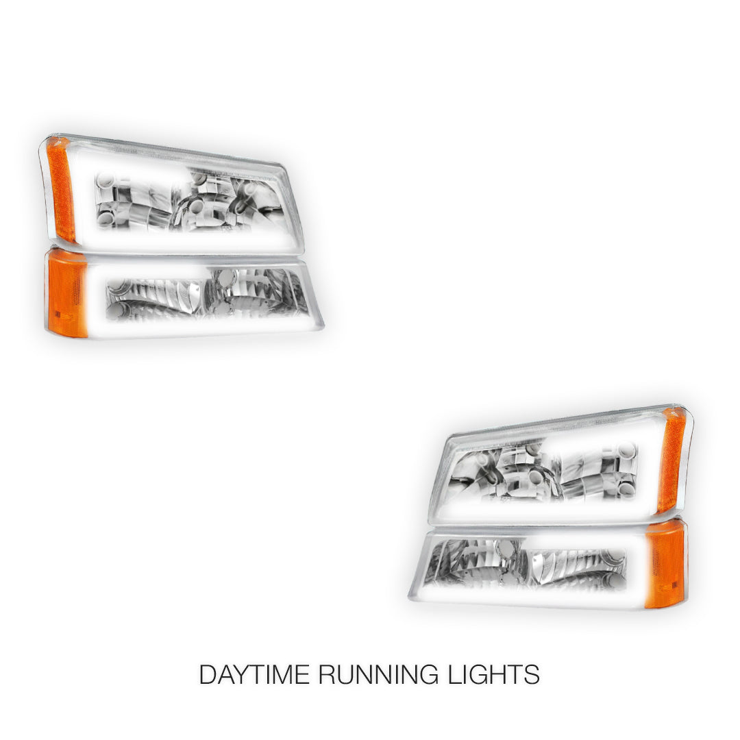 Chevrolet Silverado 1500 HD LS / LT (2003 - 2006) LED DRL Bar Headlights LH + RH