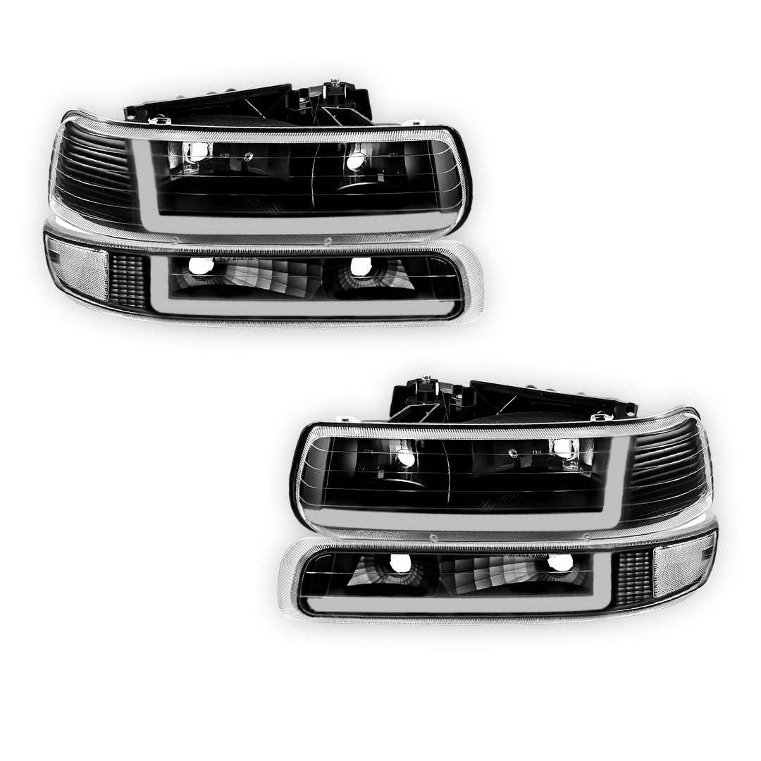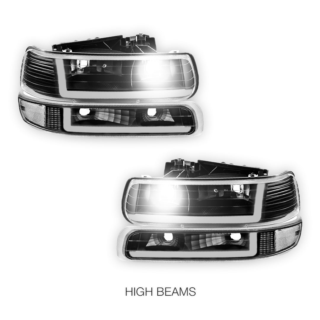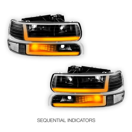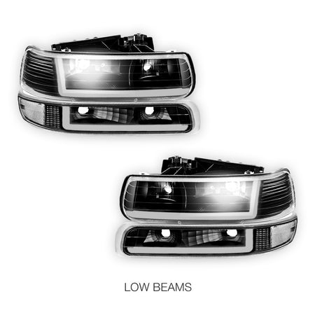 Chevrolet Silverado 2500 LS / LT / HD Classic (1999 - 2002) Dual LED L-Pattern Switchback Headlights LH + RH