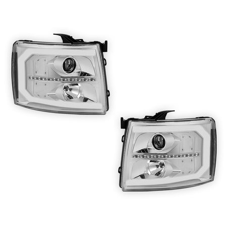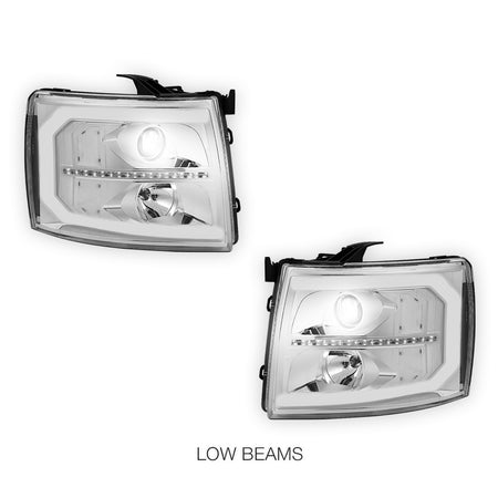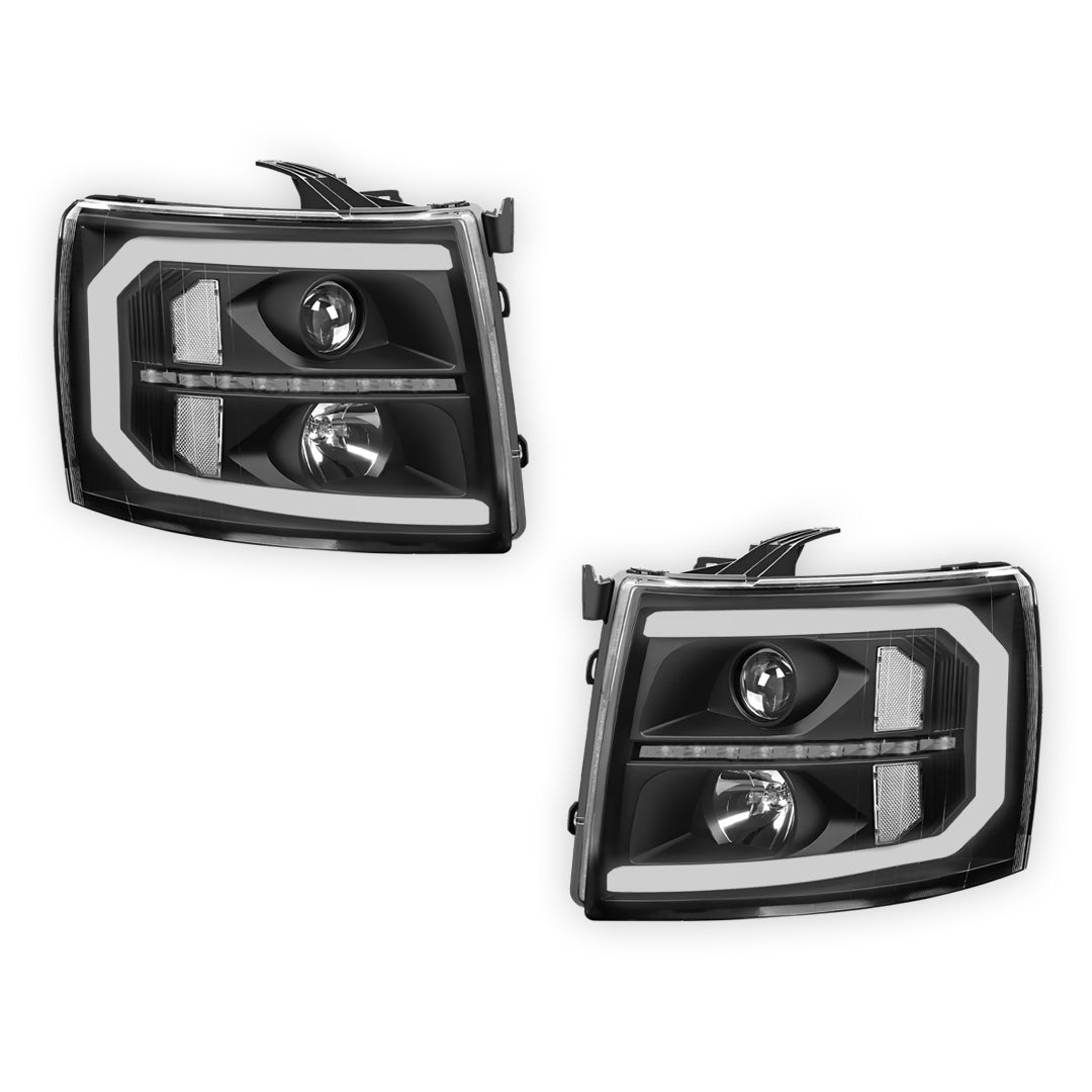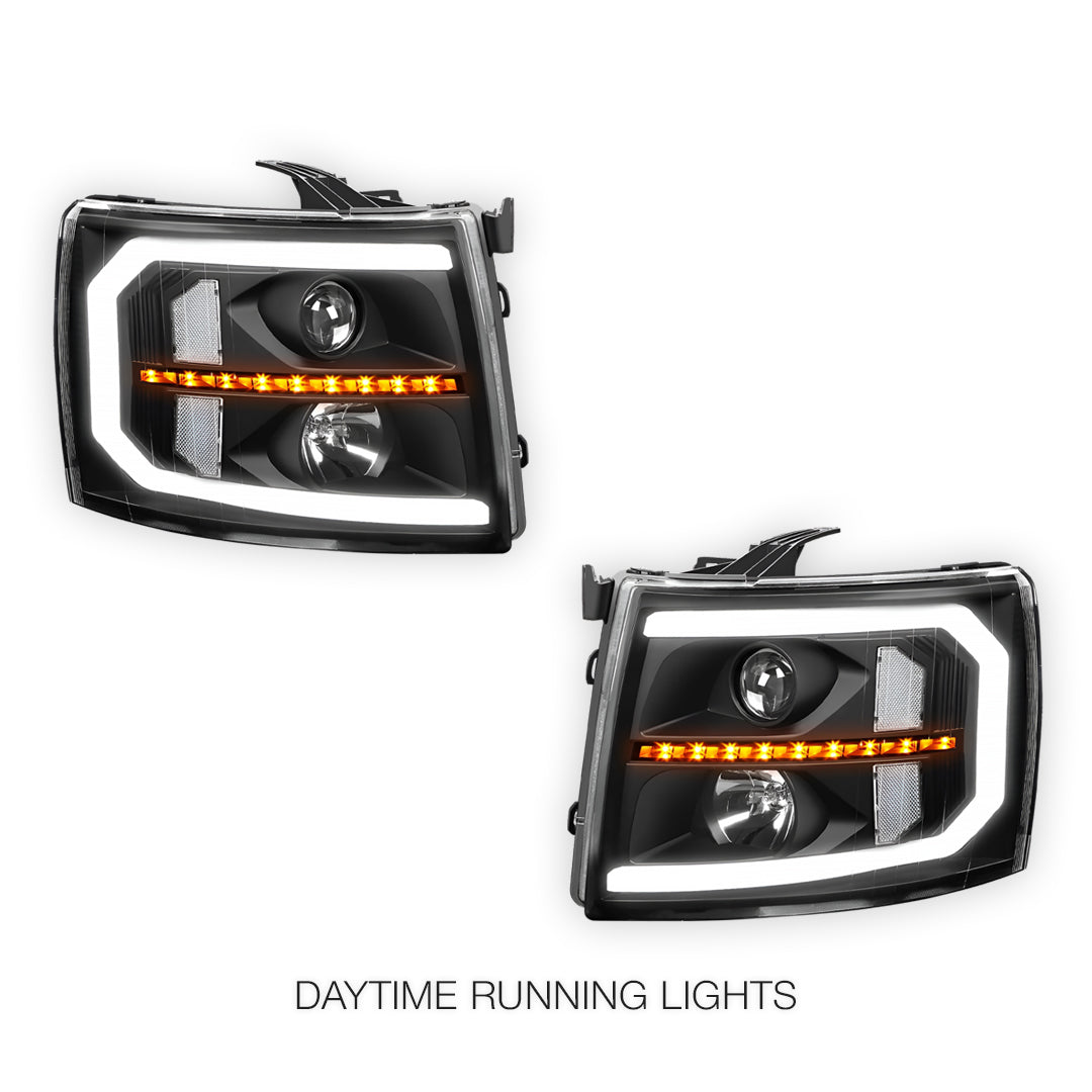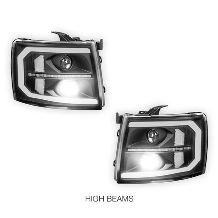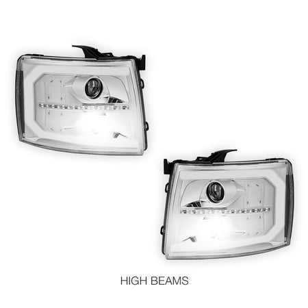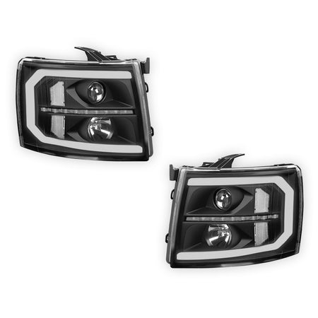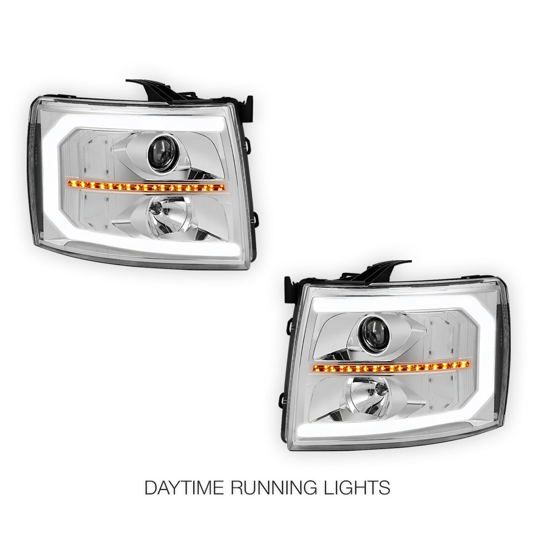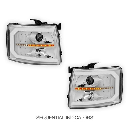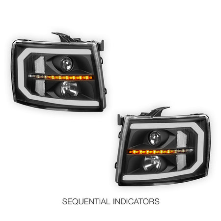 Chevrolet Silverado 2500 LS / LT / LTZ (2007 - 2014) LED DRL Bar + Sequential Signal Projector Headlights LH + RH