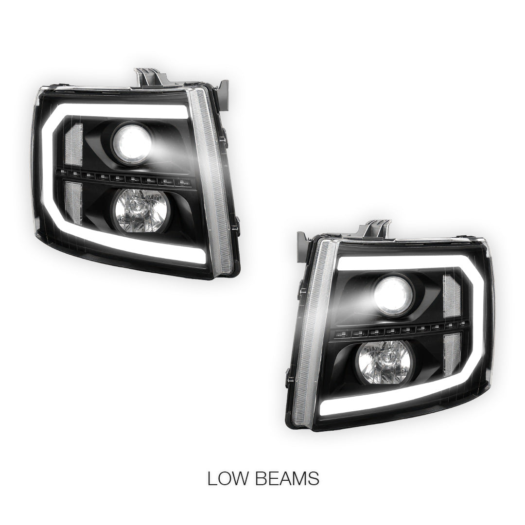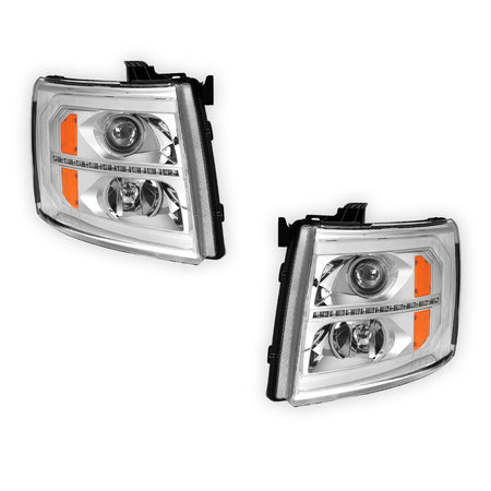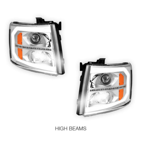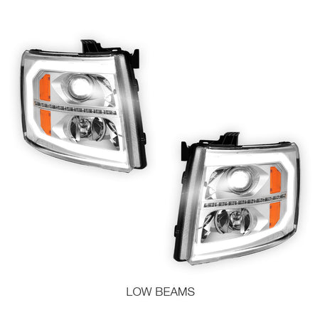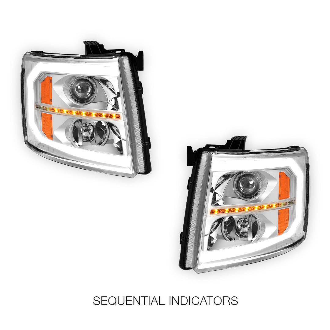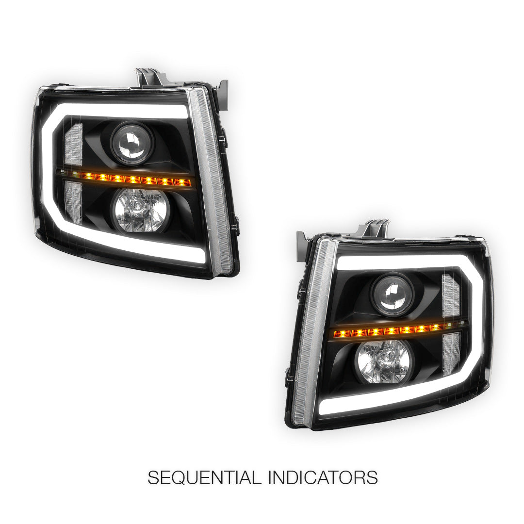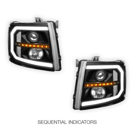 Chevrolet Silverado 3500 LS / LT / LTZ (2007 - 2014) LED DRL Bar + Sequential Signal Projector Headlights LH + RH