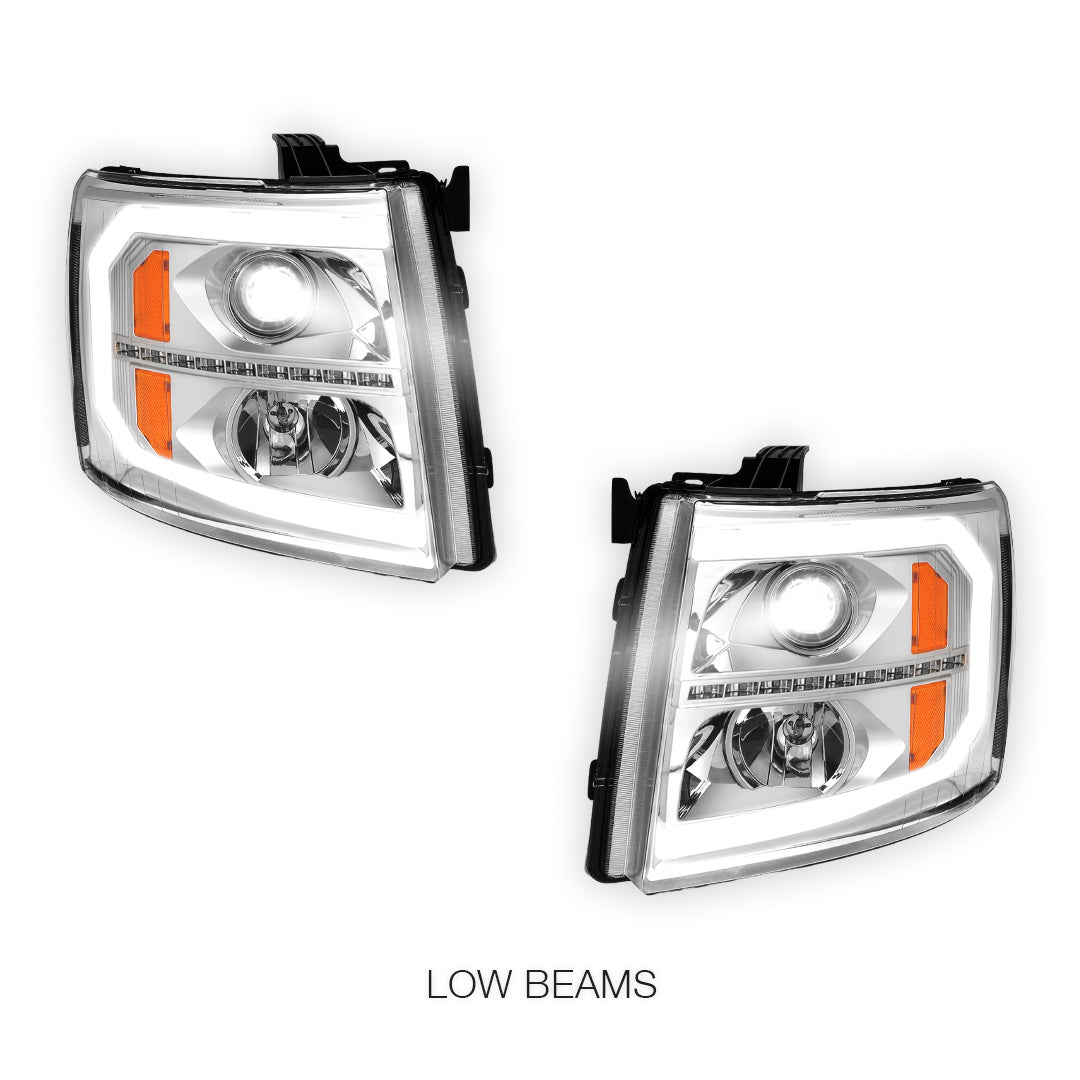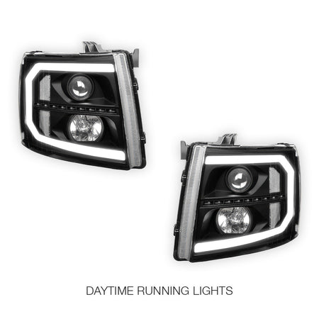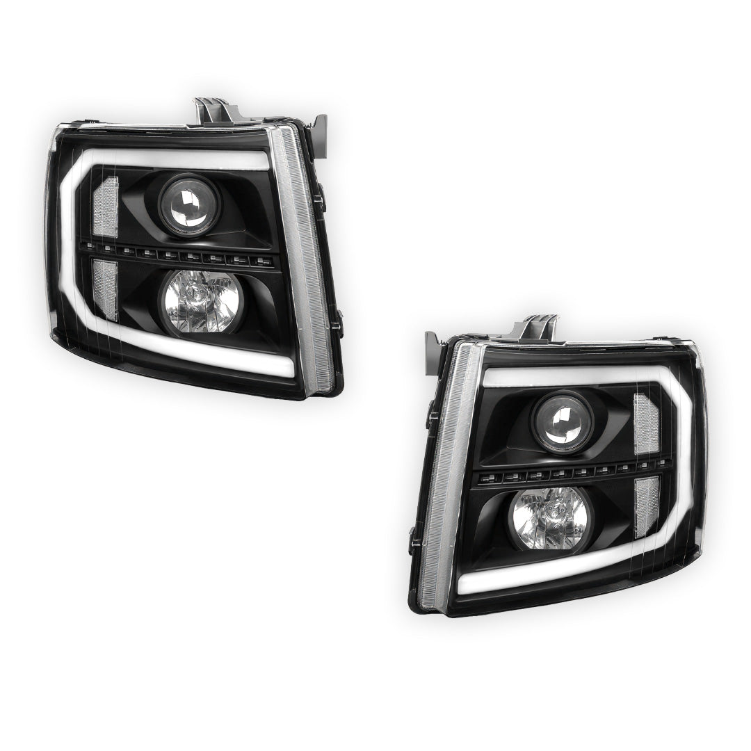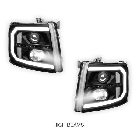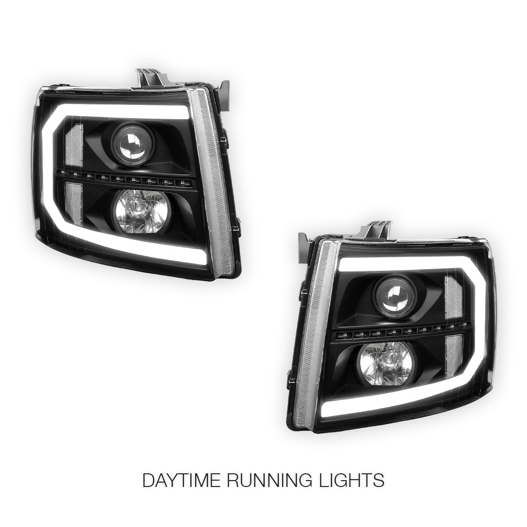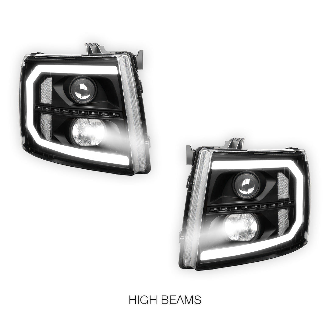 Chevrolet Silverado 3500 LS / LT / LTZ (2007 - 2014) LED DRL Bar + Sequential Signal Projector Headlights LH + RH