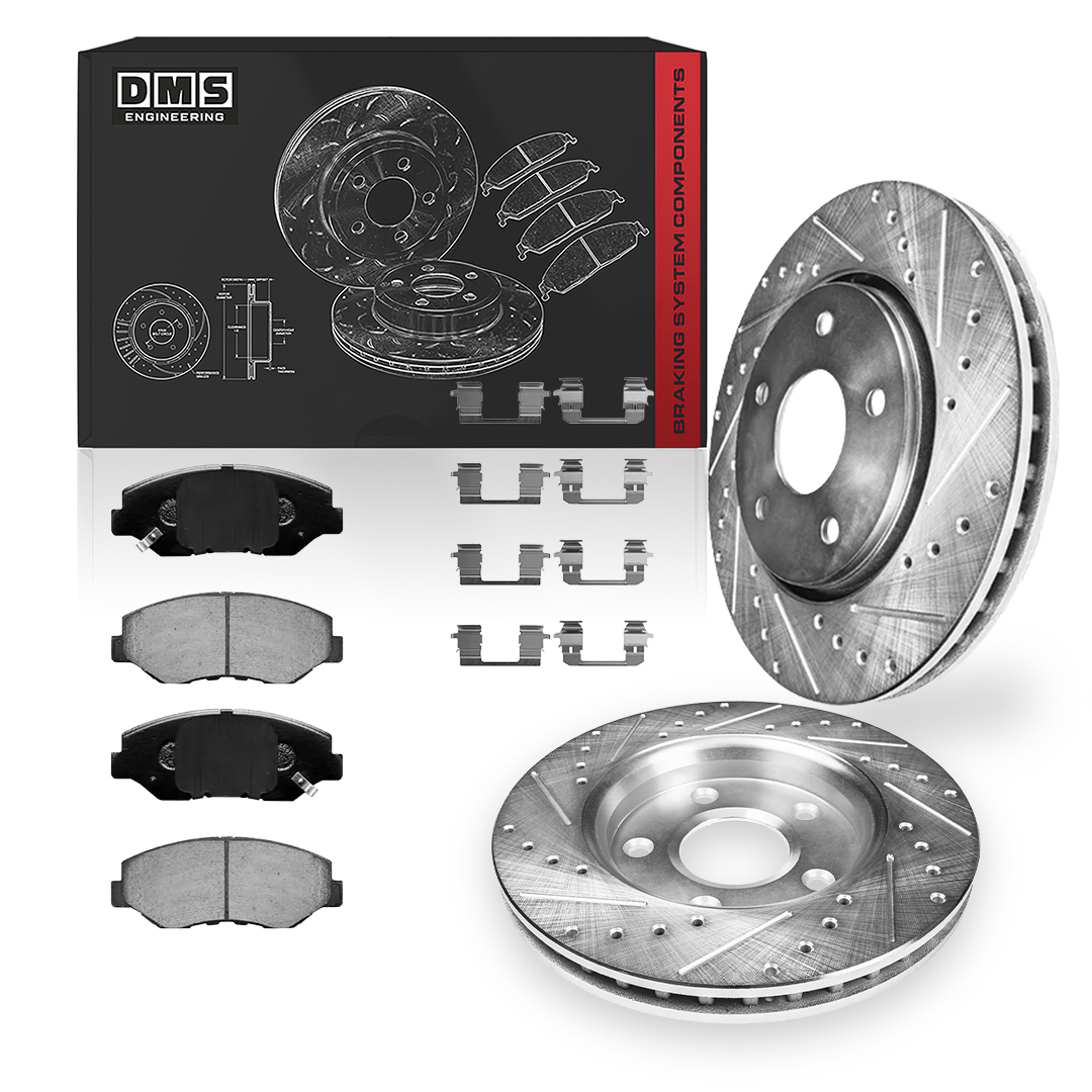- Front and Rear Drilled and Slotted Brake Rotors and Brake Pads: LH + RH