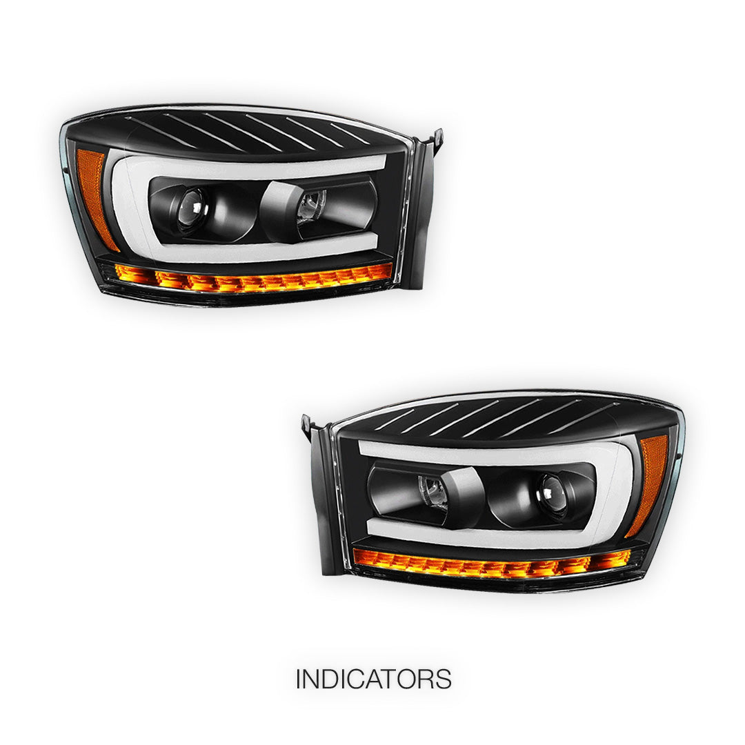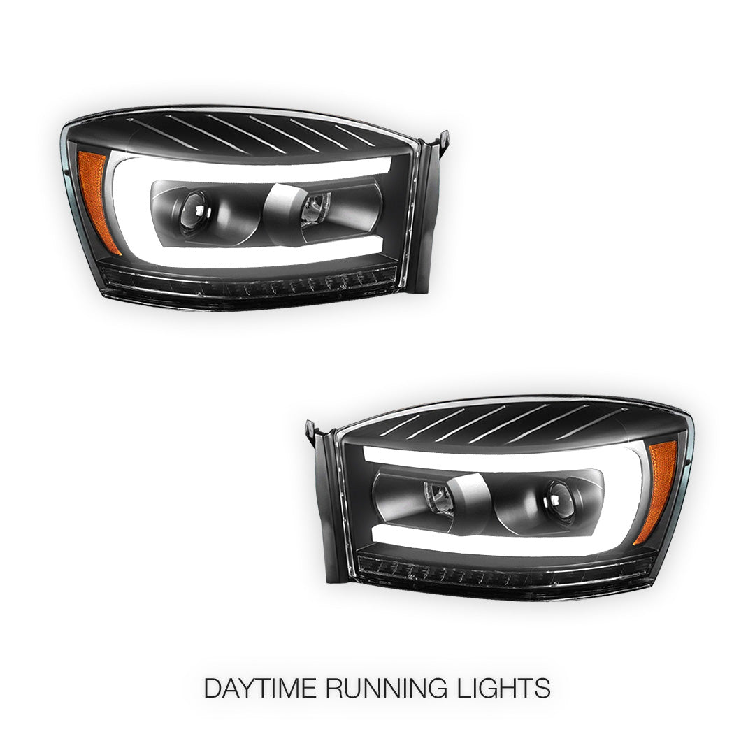 Dodge RAM 2500 (2006 - 2009) LED DRL Sequential Signal Projector Headlights LH + RH