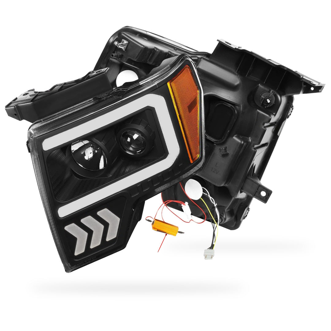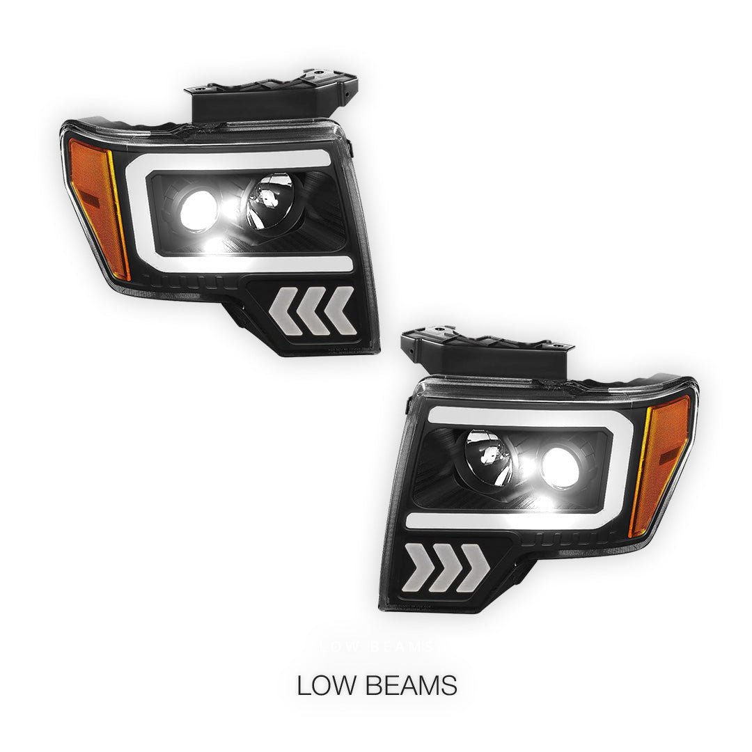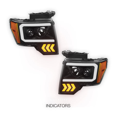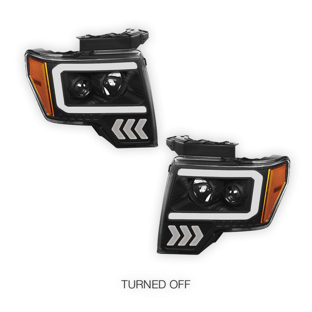 Ford F-150 (2009 - 2014) LED Arrow Turn Signal Projector Headlights LH + RH