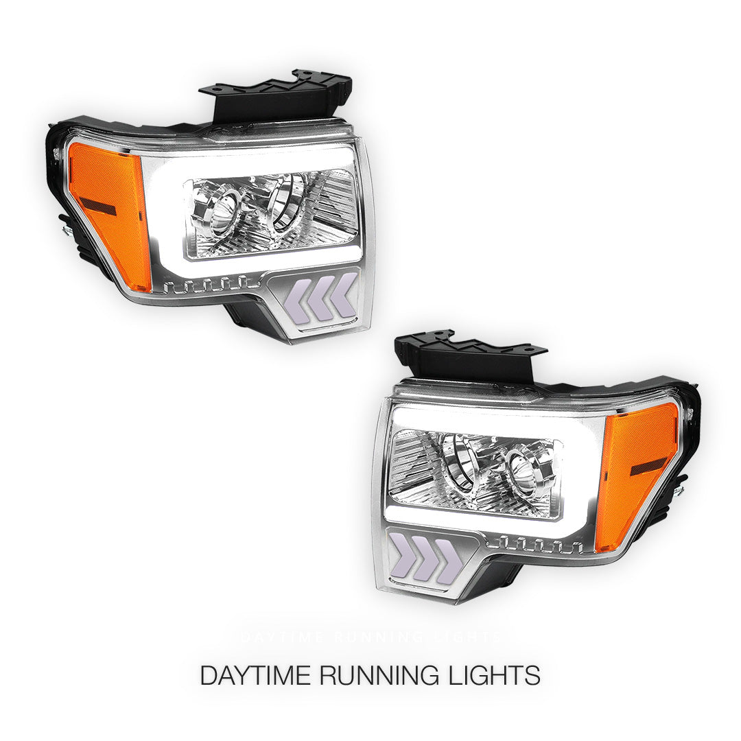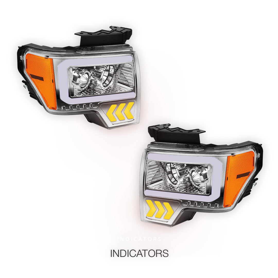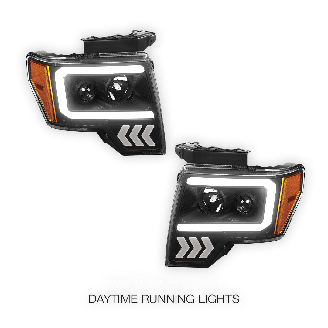 Ford F-150 (2009 - 2014) LED Arrow Turn Signal Projector Headlights LH + RH