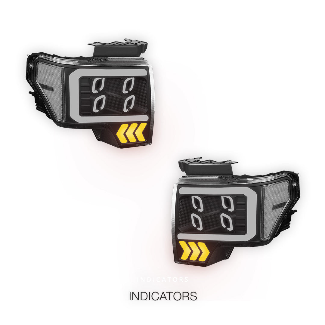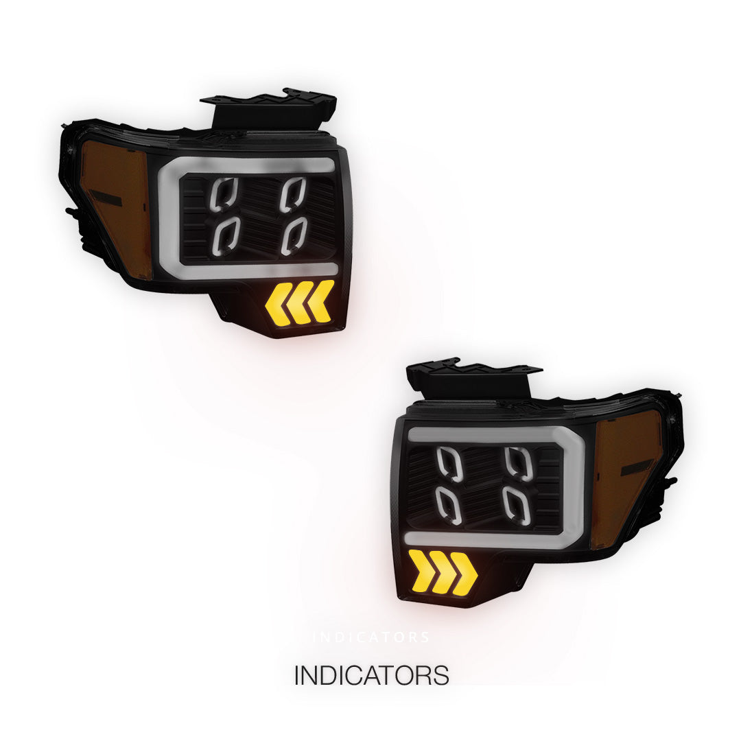 Ford F-150 (2009 - 2014) LED DRL Signal Quad Projector Headlights LH + RH