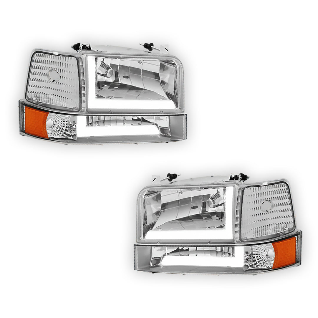 Ford F-250 (1992 - 1996) LED DRL Replacement Headlights and Bumper Lights LH + RH
