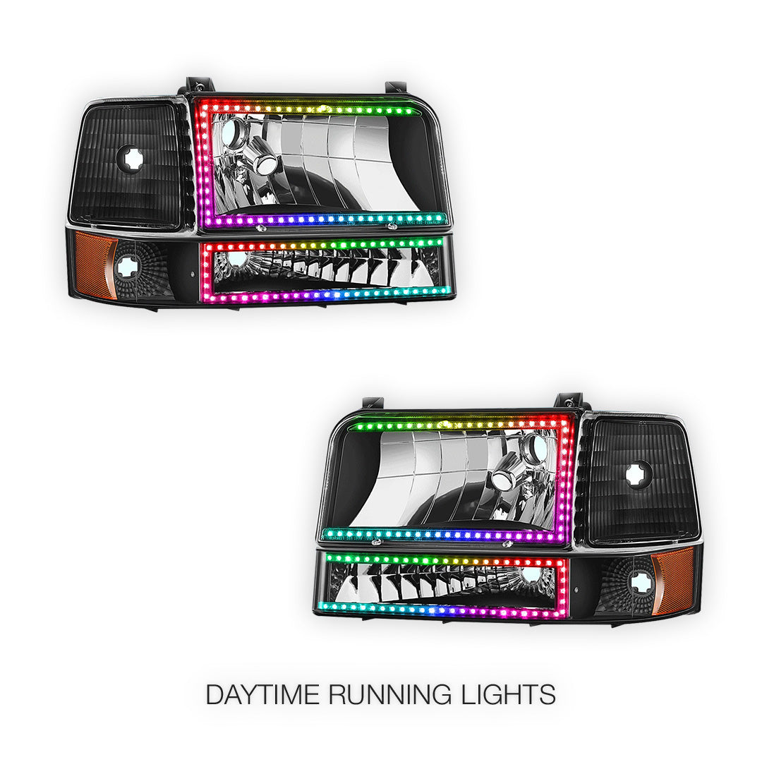 Ford F-250 (1992 - 1996) Sequential RGB LED DRL Headlights LH + RH