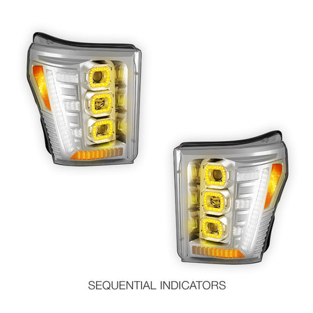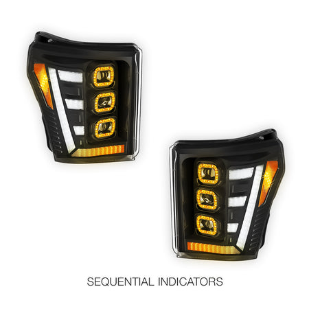 Ford F-250 Super Duty (2011 - 2016) Switchback Sequential Signal LED Projector Headlights LH - RH
