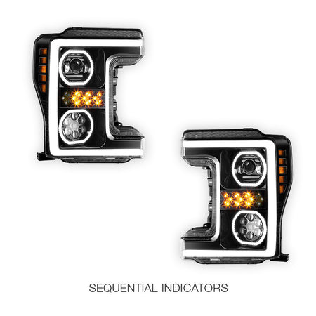 Ford F-250 Super Duty (2017 - 2019) Sequential Turn Signal LED DRL Projector Headlights LH + RH