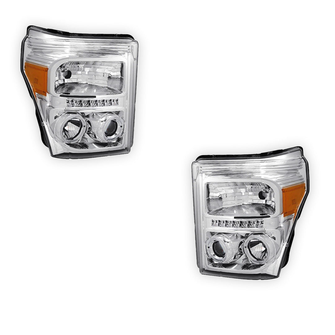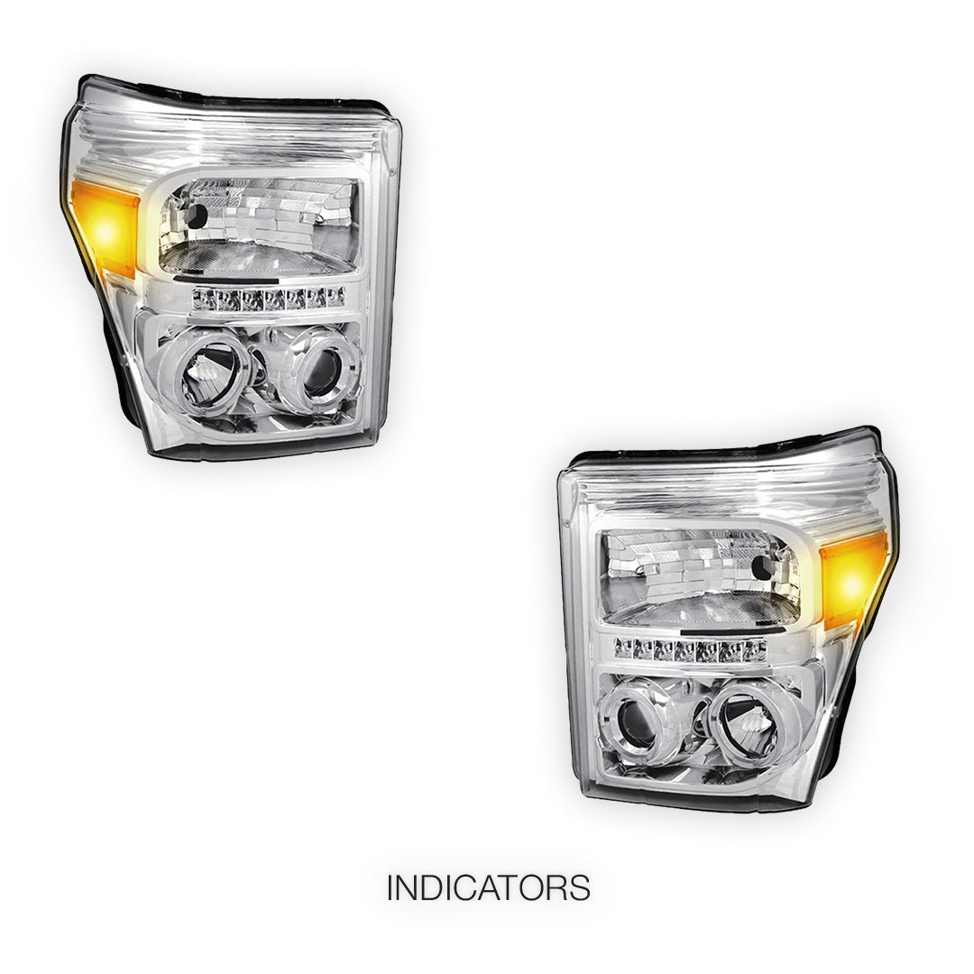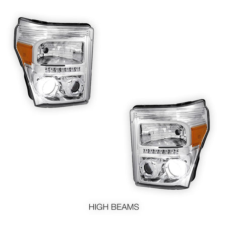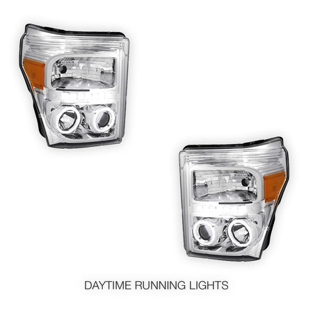 Ford F-350 (2011 - 2016) Dual Halo Projector LED DRL Headlights LH + RH