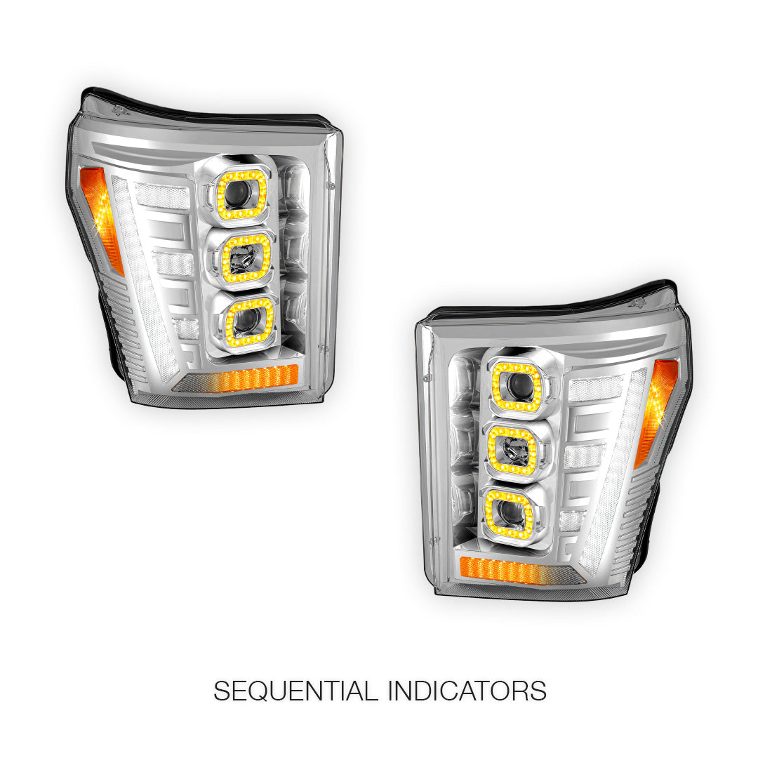 Ford F-350 Super Duty (2011 - 2016) Switchback Sequential Signal LED Projector Headlights LH - RH