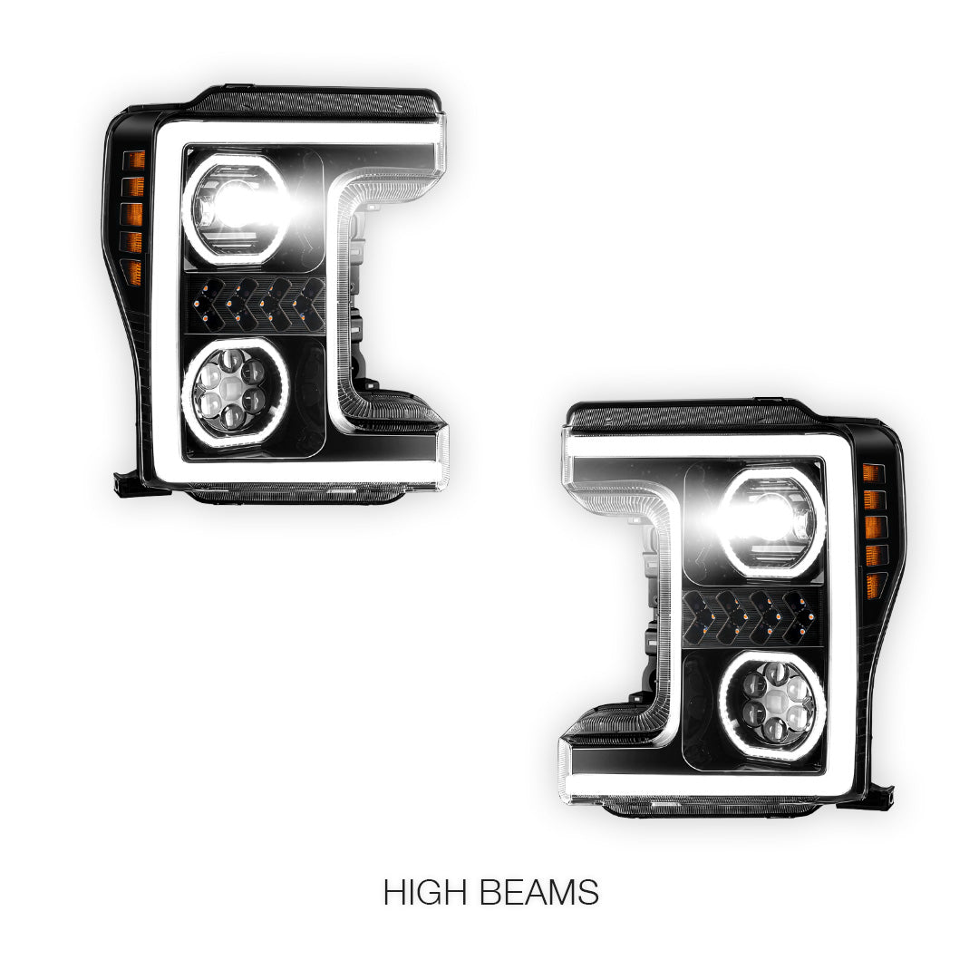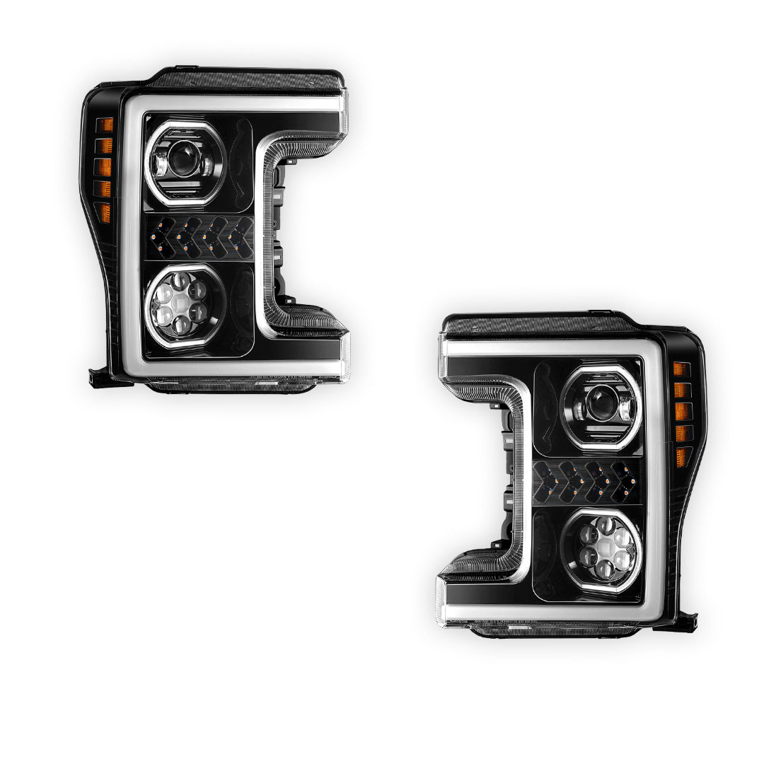 Ford F-350 Super Duty (2017 - 2019) Sequential Turn Signal LED DRL Projector Headlights LH + RH