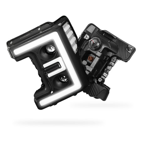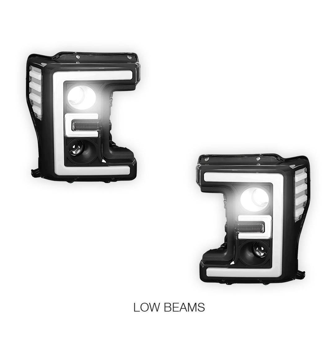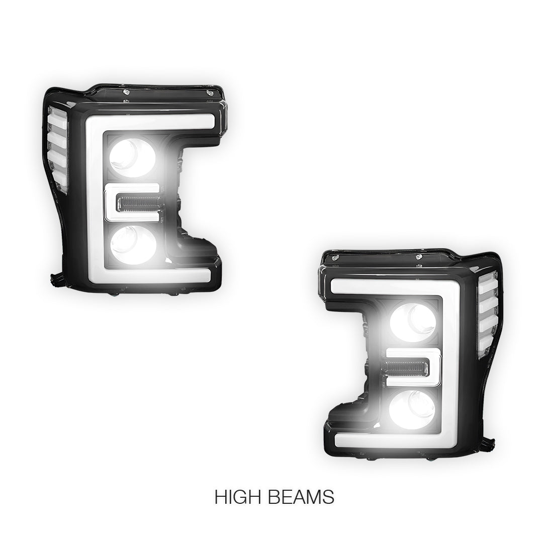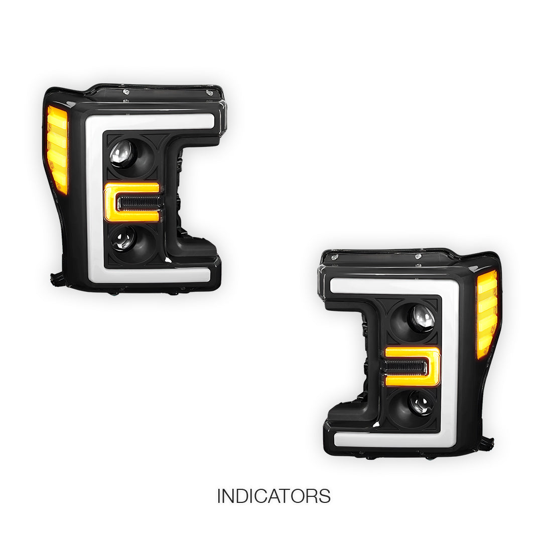 Compatible with Ford F-450 Super Duty (2017 - 2019) our premium headlights are engineered for precision fit and easy installation. Designed to seamlessly integrate with the existing factory mounts and wiring, these lights can be installed swiftly, ensuring minimal downtime for your vehicle.