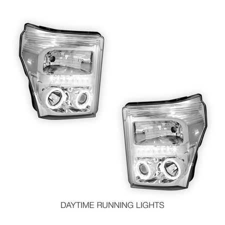 Ford F-550 (2011 - 2016) Dual Halo Projector LED DRL Headlights LH + RH