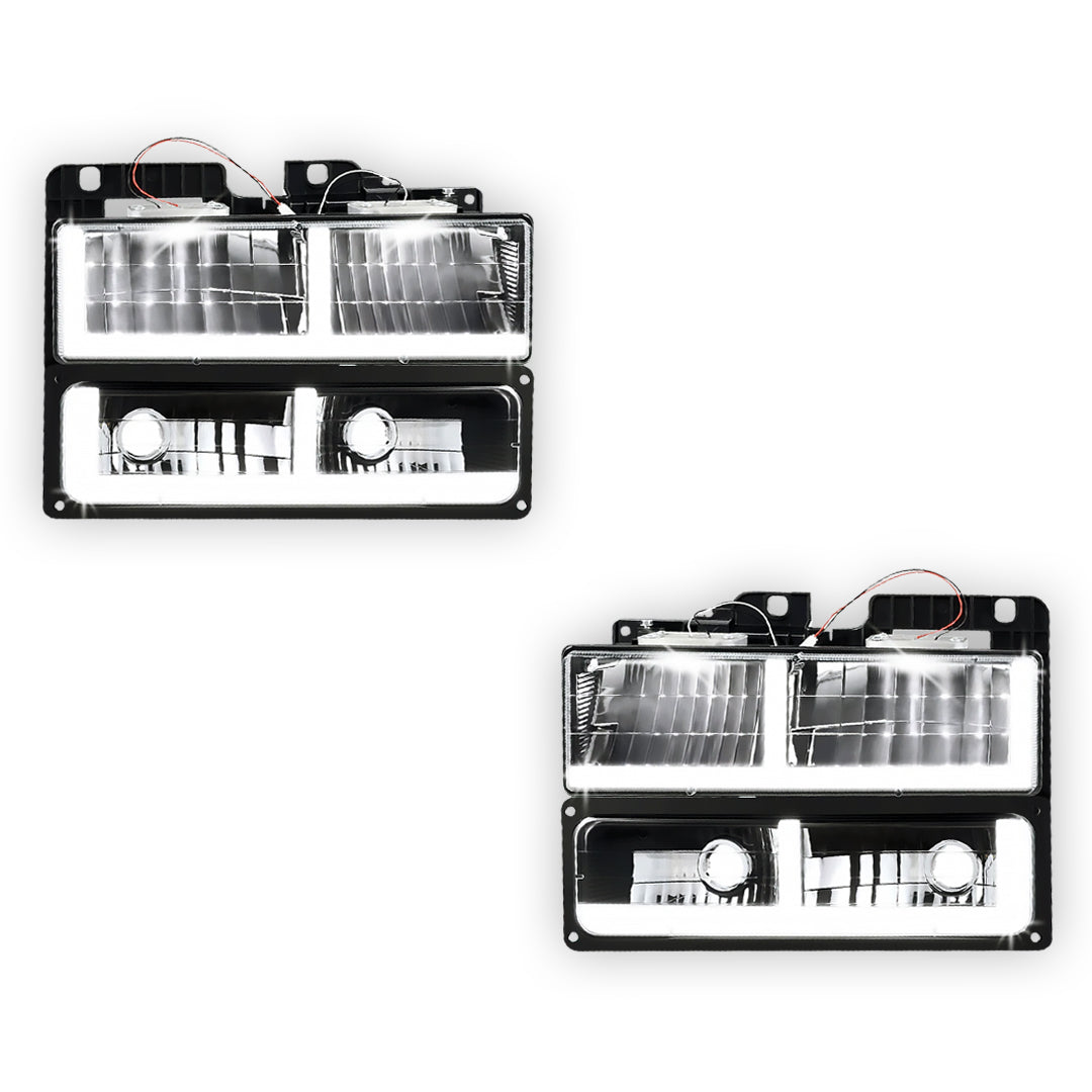 GMC C1500 Sierra / SLE / SLT (1988 - 1999) F-LED DRL Replacement Headlights LH + RH