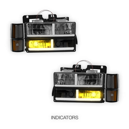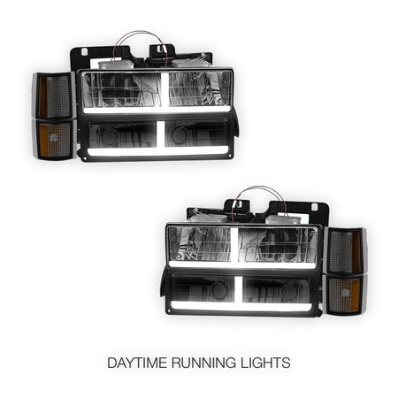 GMC C1500 SL / SLE / SLT (1994 - 1999) F - LED Bar DRL Headlights LH + RH