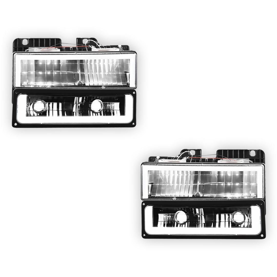 GMC K1500 SLE / SLT (1988 - 1999) Square-LED DRL Replacement Headlights LH + RH