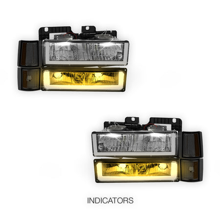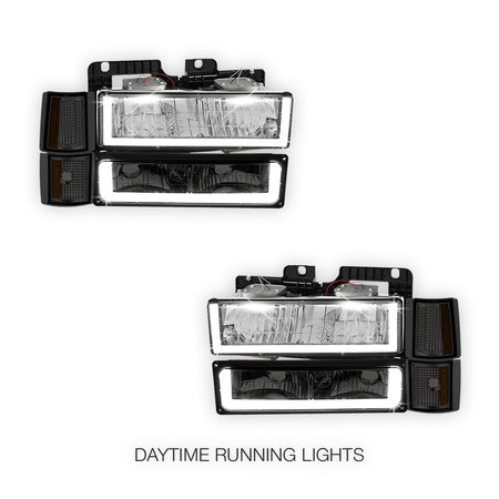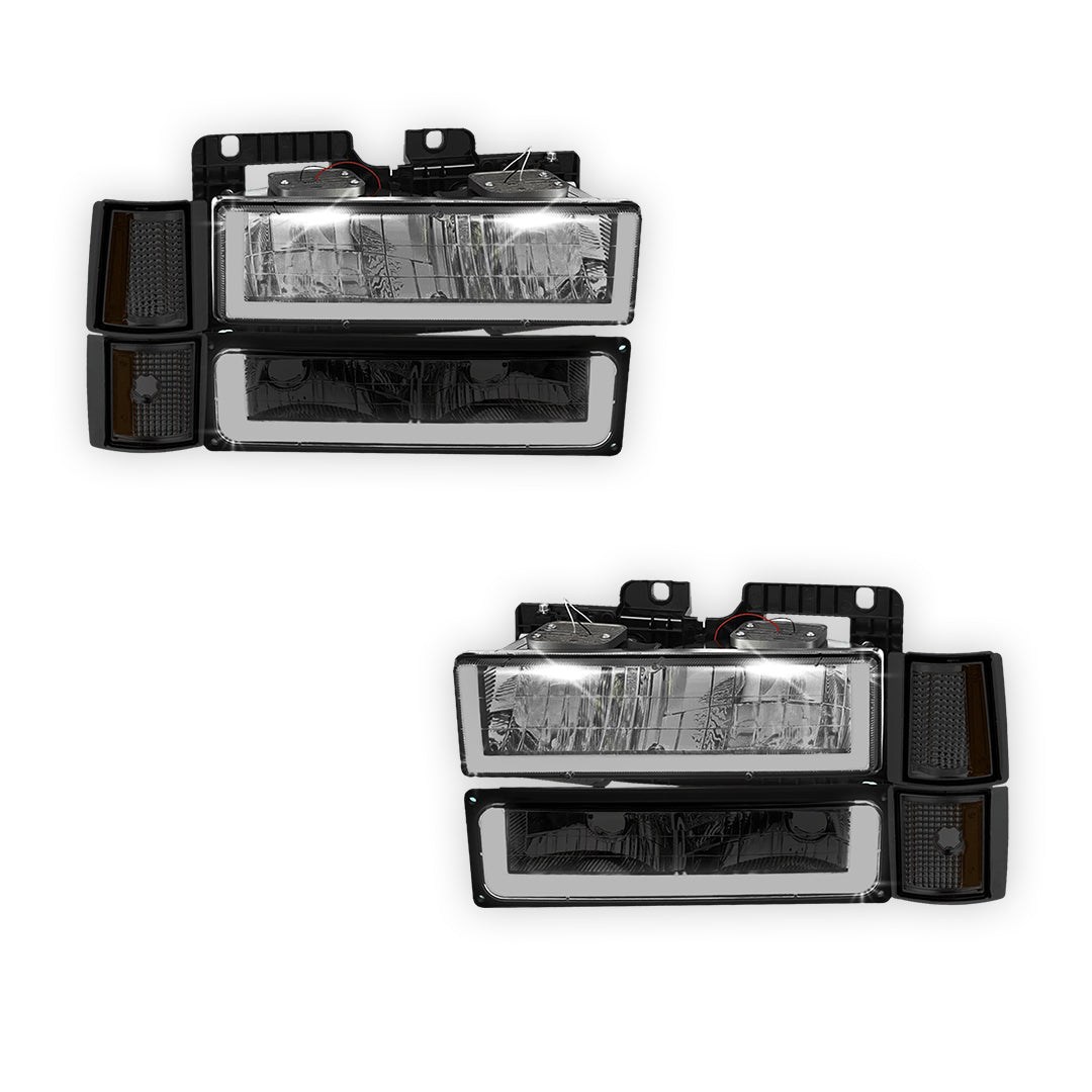 GMC K2500 Cheyenne / Scottsdale / SLE (1994 - 2000) U - LED Bar DRL Headlights LH + RH
