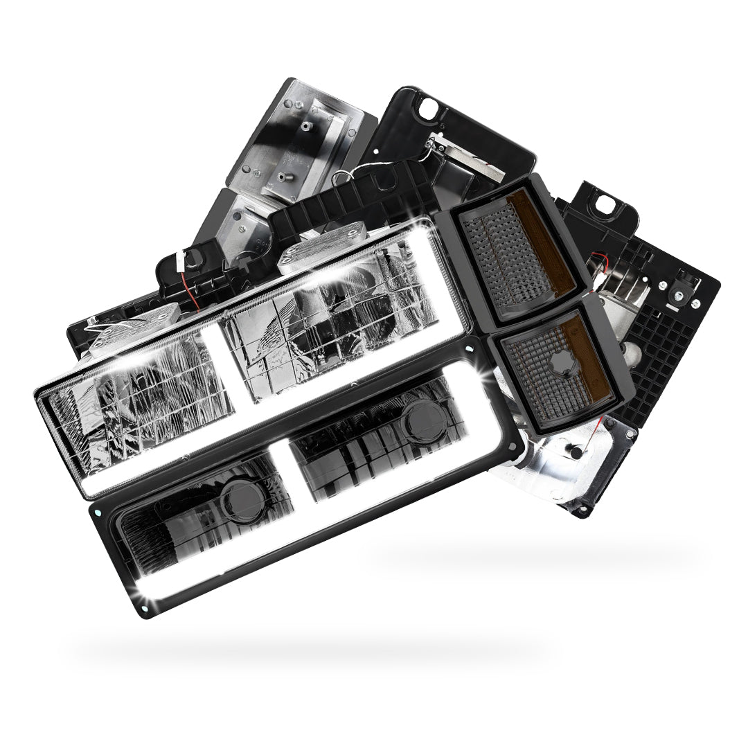 GMC K2500 Suburban SLE / SLT (1994 - 1999) F - LED Bar DRL Headlights LH + RH