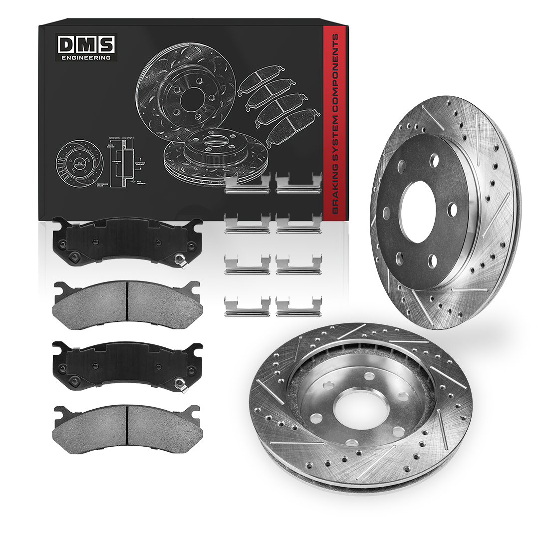 - Front Drilled and Slotted Brake Rotors and Brake Pads: LH + RH