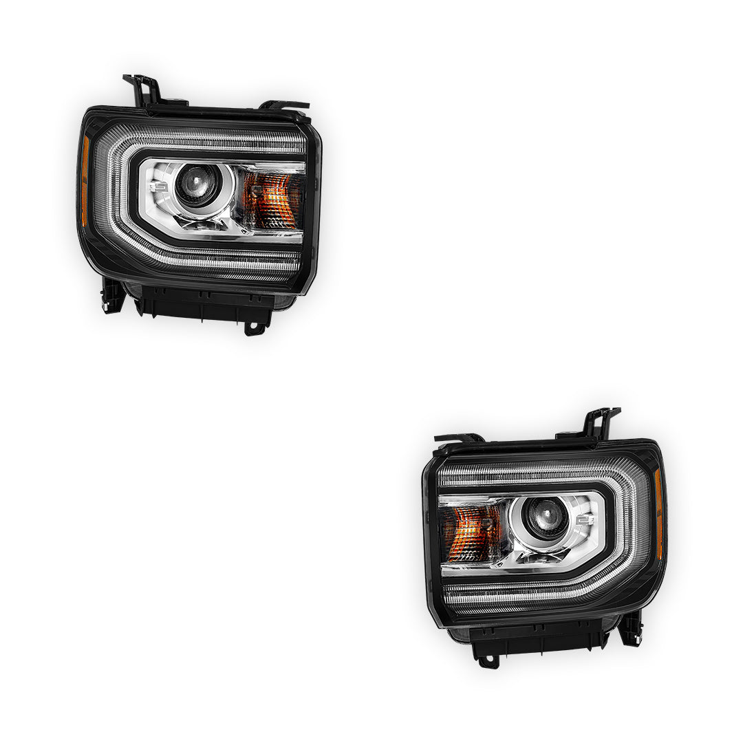 GMC Sierra 1500 (2016 - 2018) LED DRL HID/Xenon Black Projector Headlights LH + RH