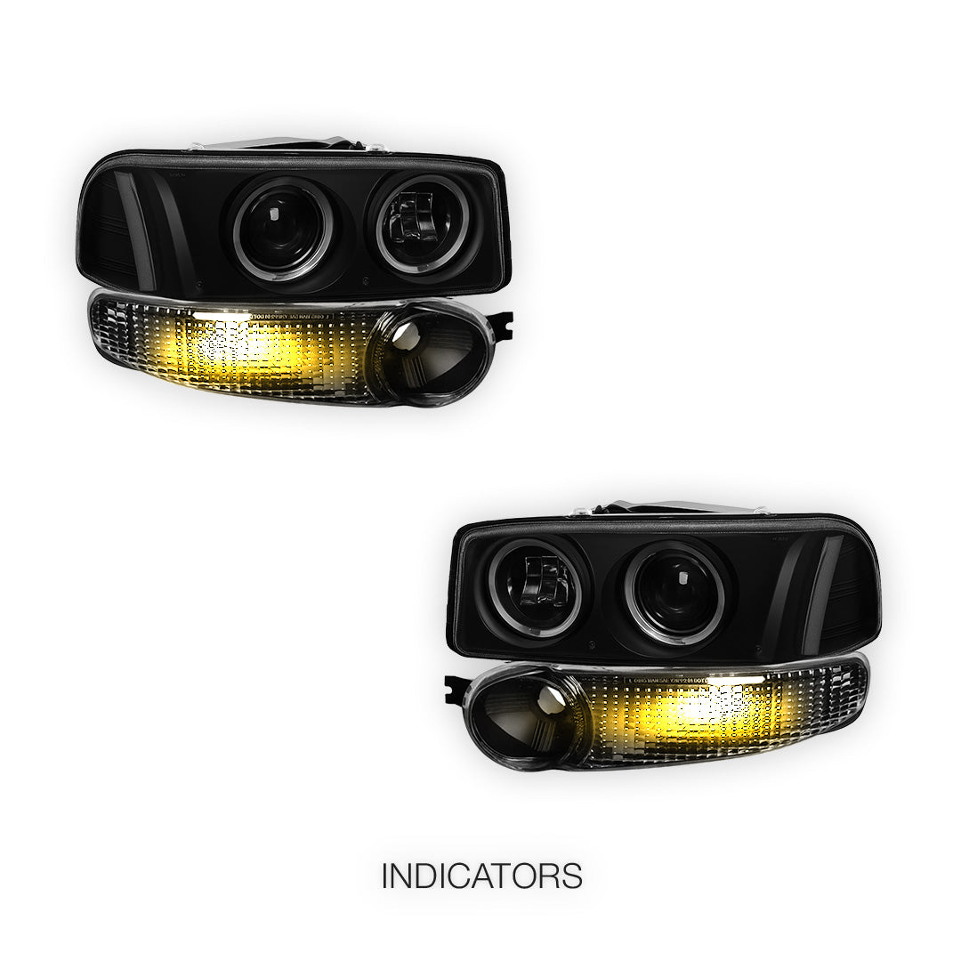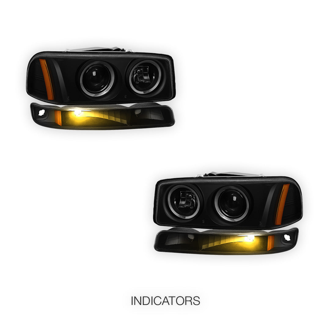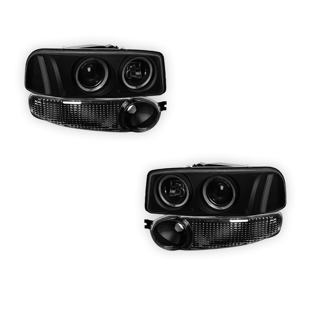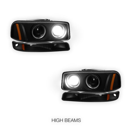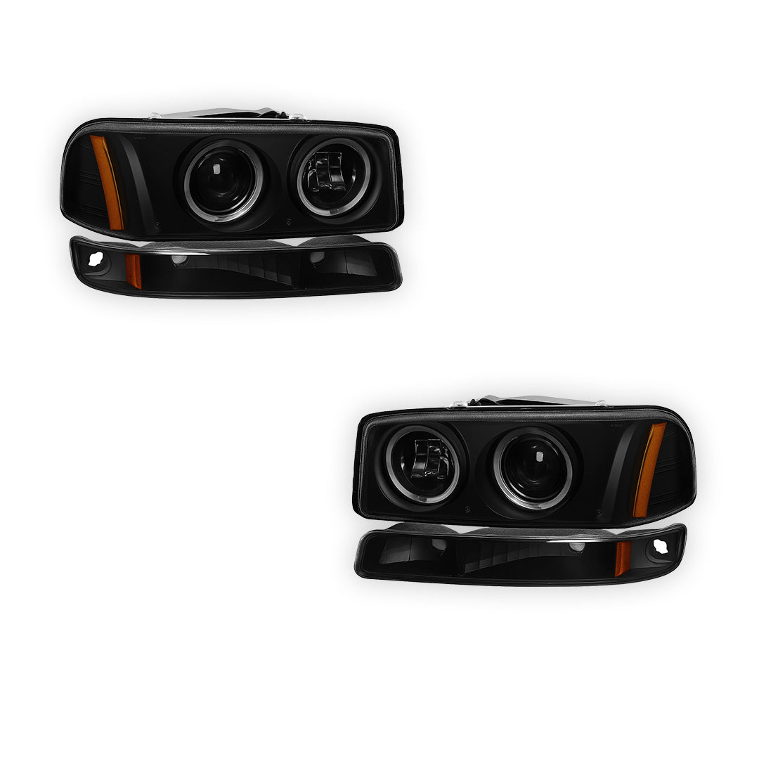 GMC Sierra 1500 Classic Denali (2007) Black Dual Halo Projector Headlights LH + RH