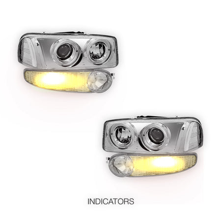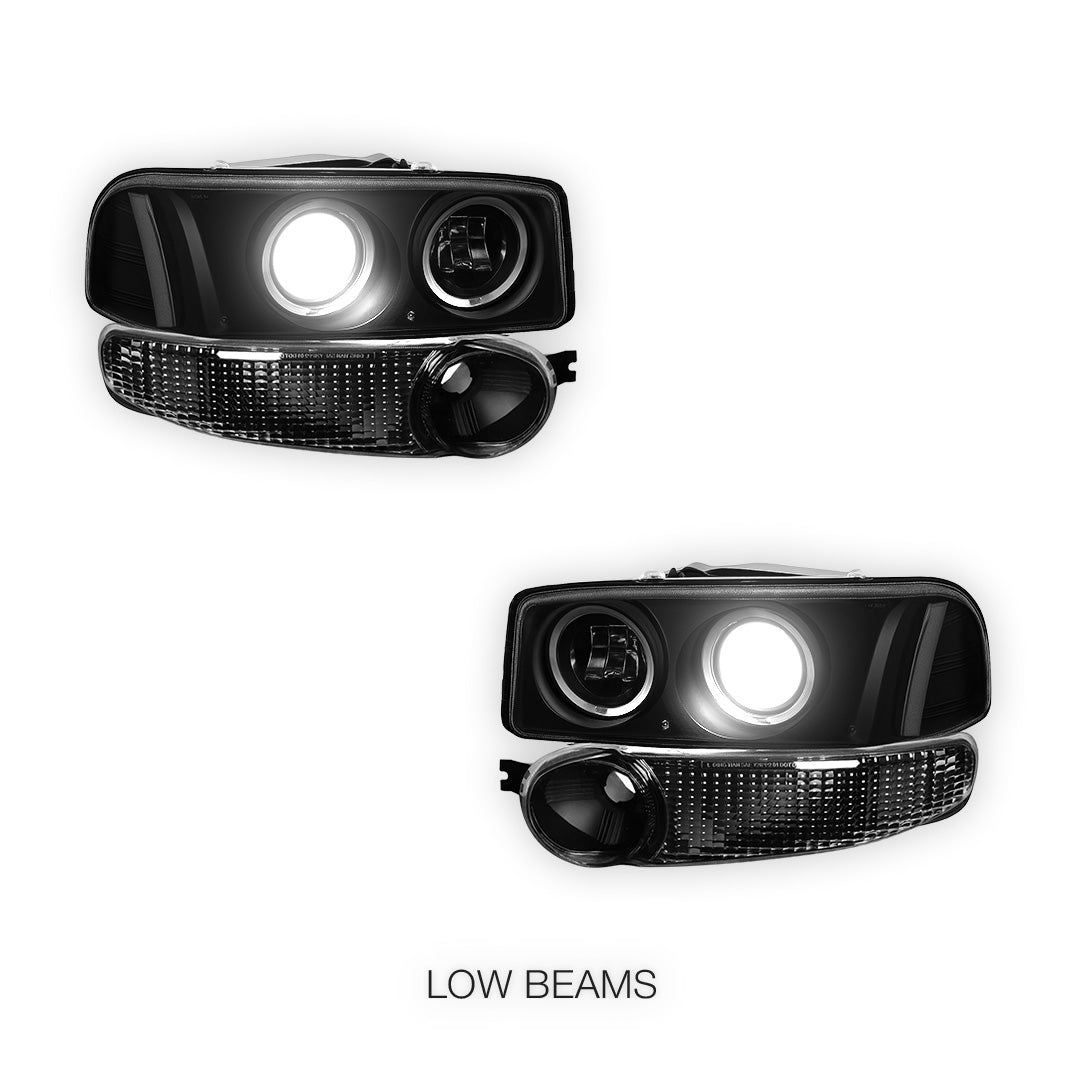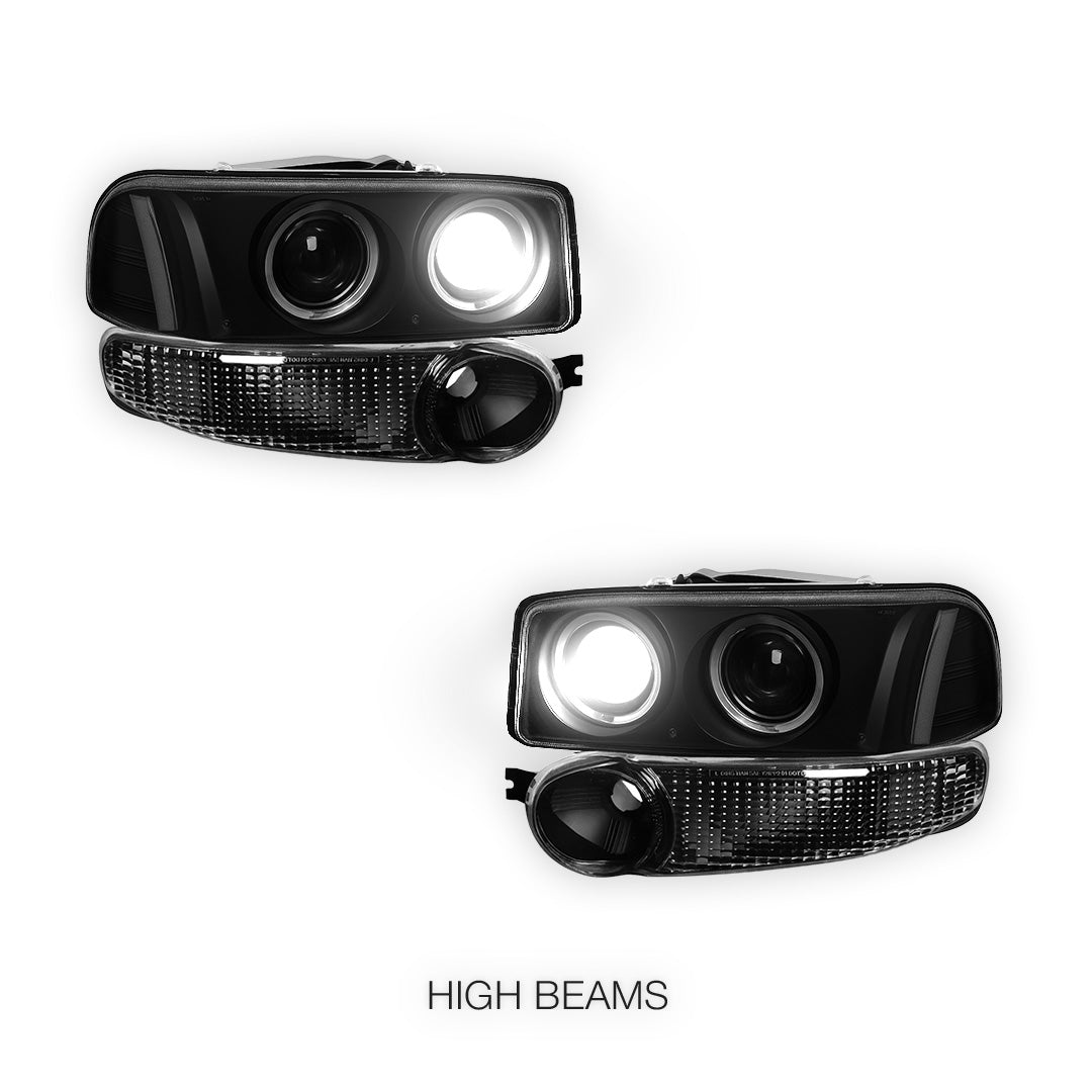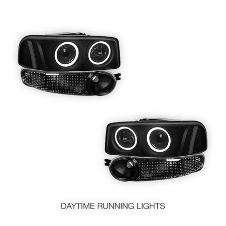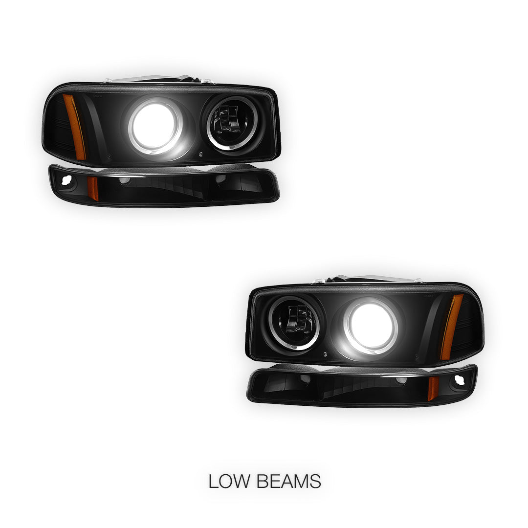 GMC Sierra 1500 Classic Denali (2007) Black Dual Halo Projector Headlights LH + RH