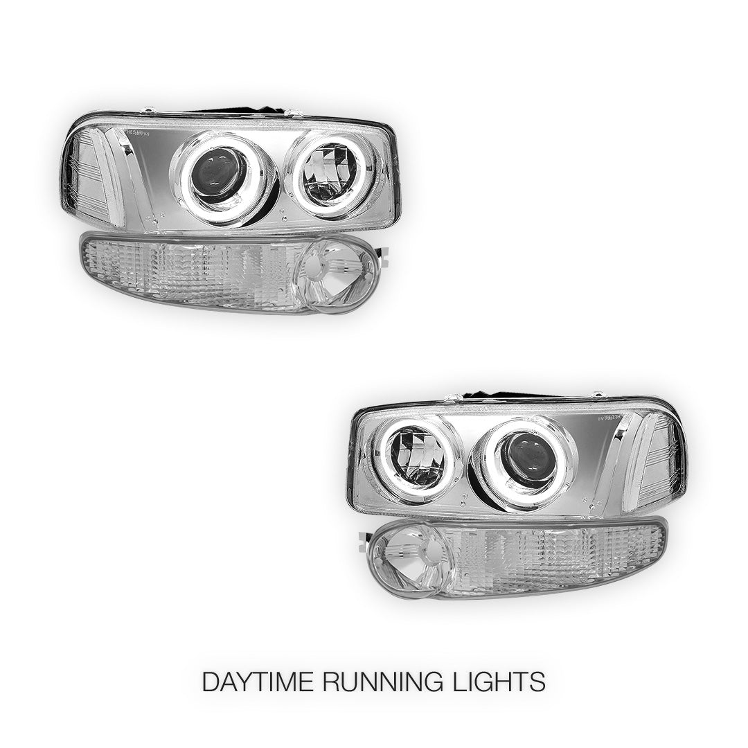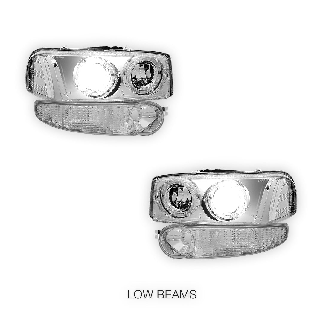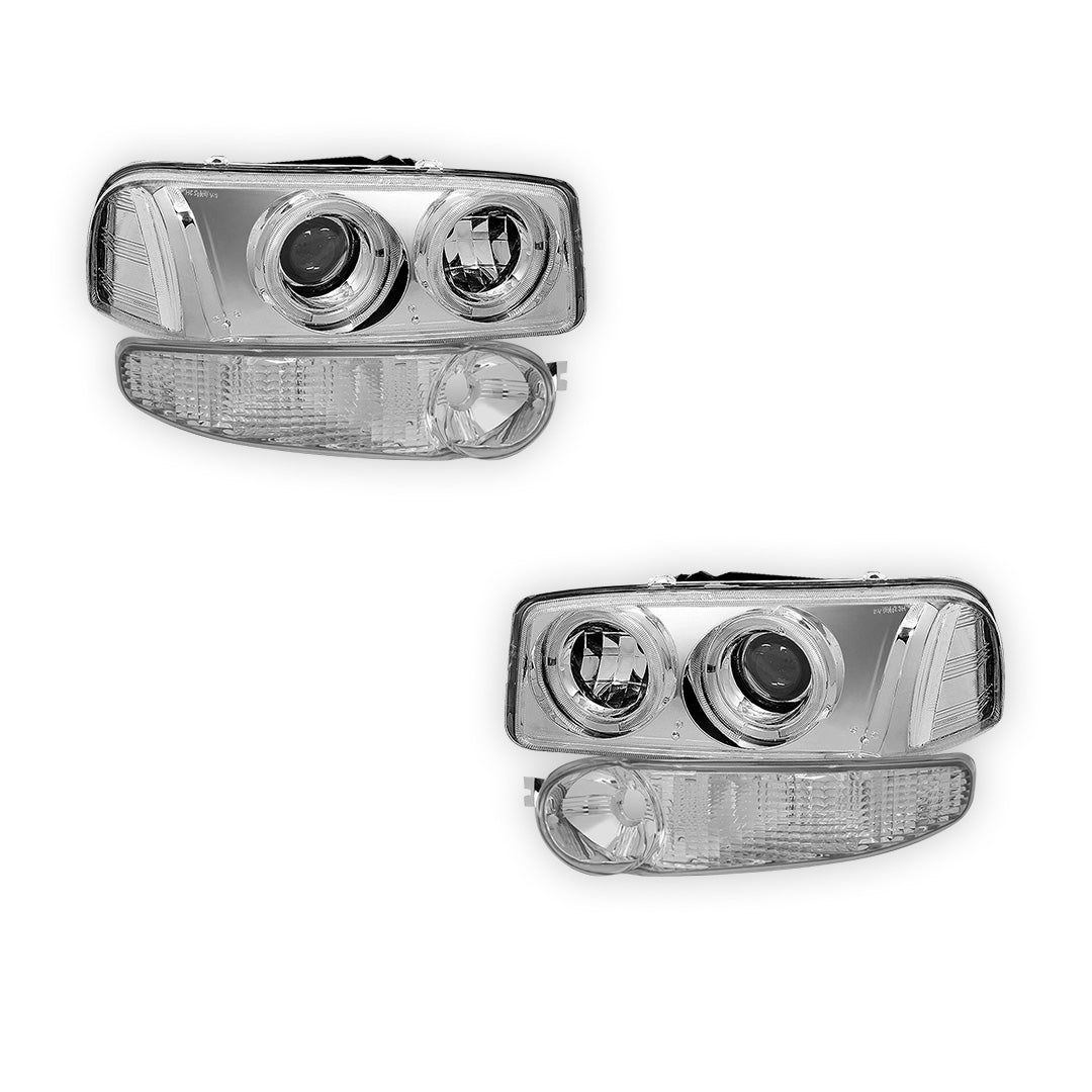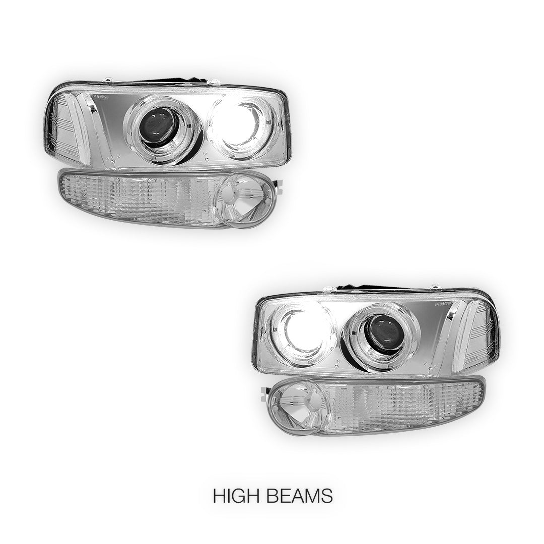 GMC Sierra 1500 Classic Denali (2007) Black Dual Halo Projector Headlights LH + RH