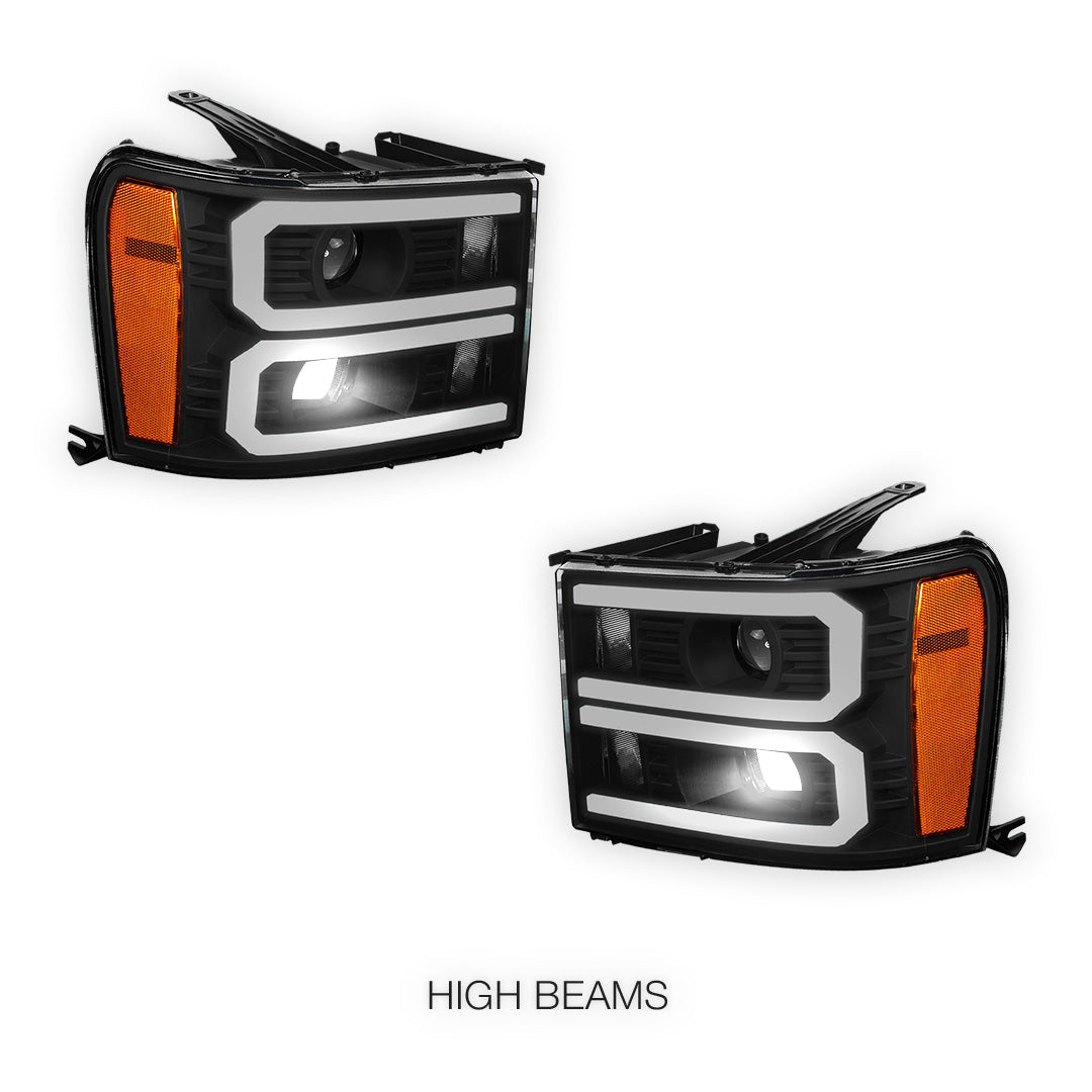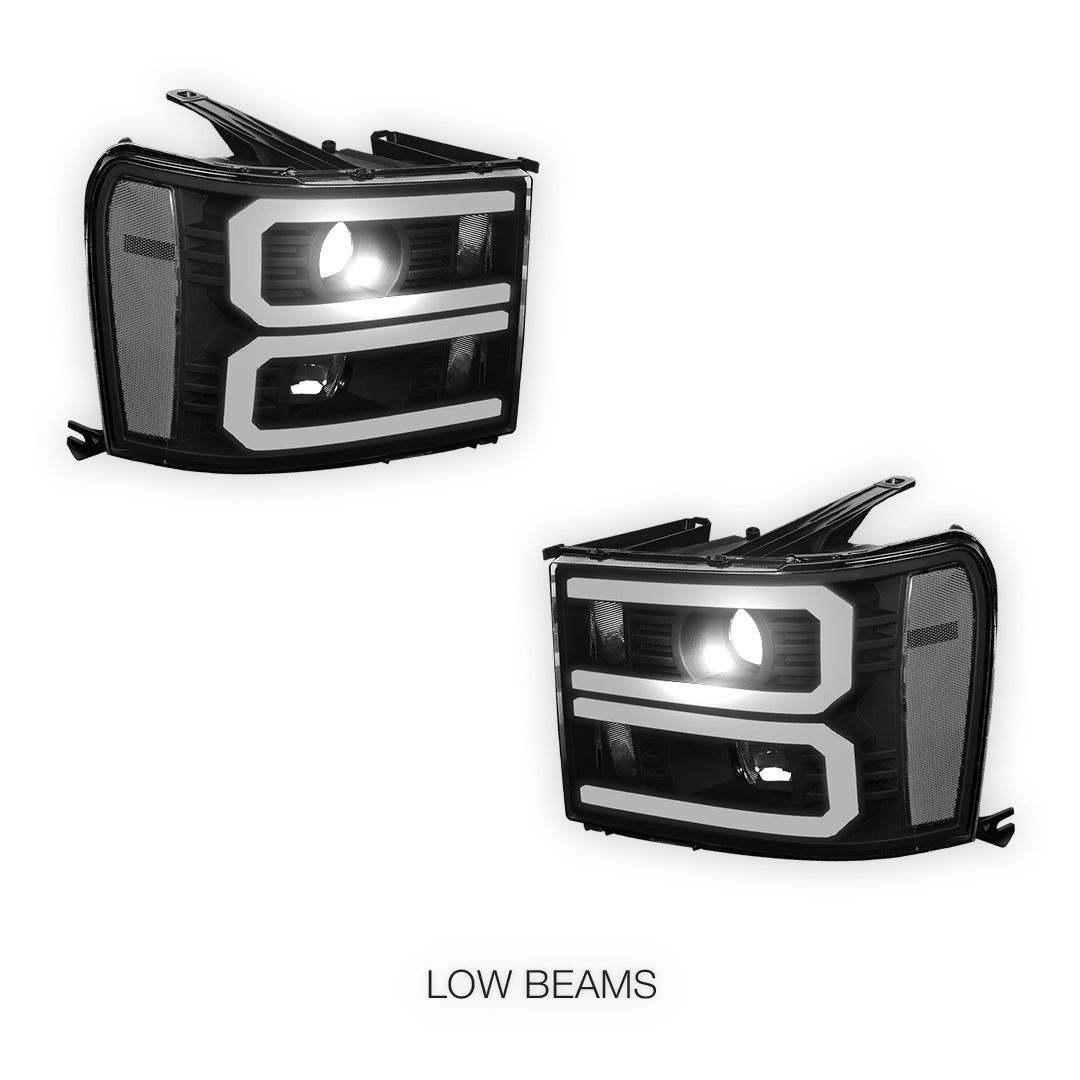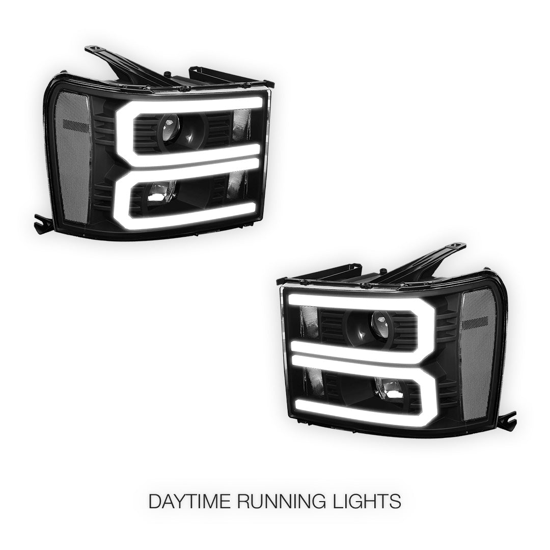 GMC Sierra 1500 Denali / SLE / SLT (2007 - 2013) U-Shaped LED DRL Projector Headlights LH + RH