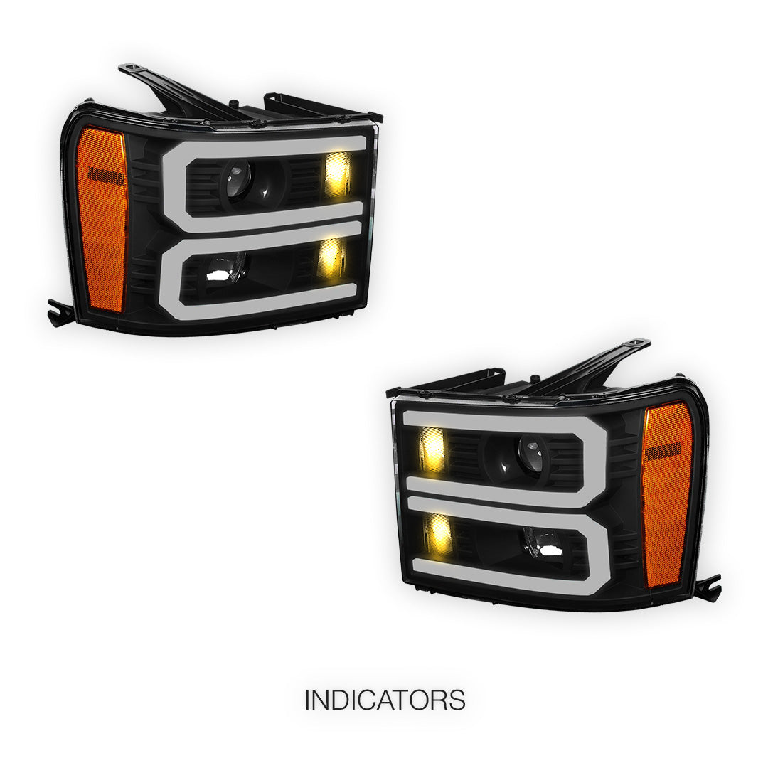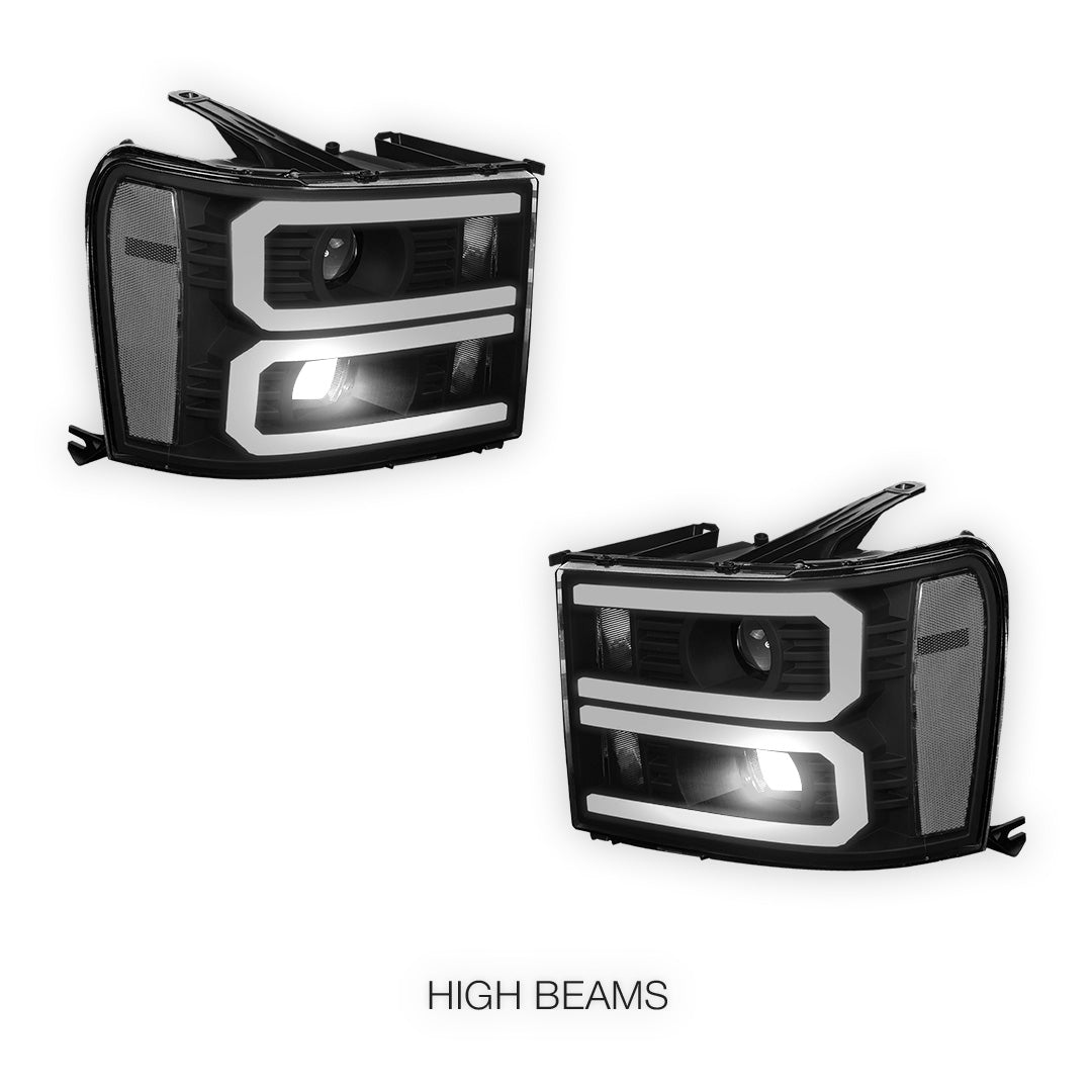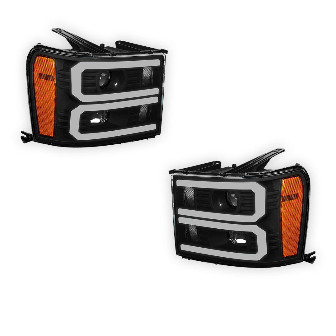 GMC Sierra 1500 Denali / SLE / SLT (2007 - 2013) U-Shaped LED DRL Projector Headlights LH + RH