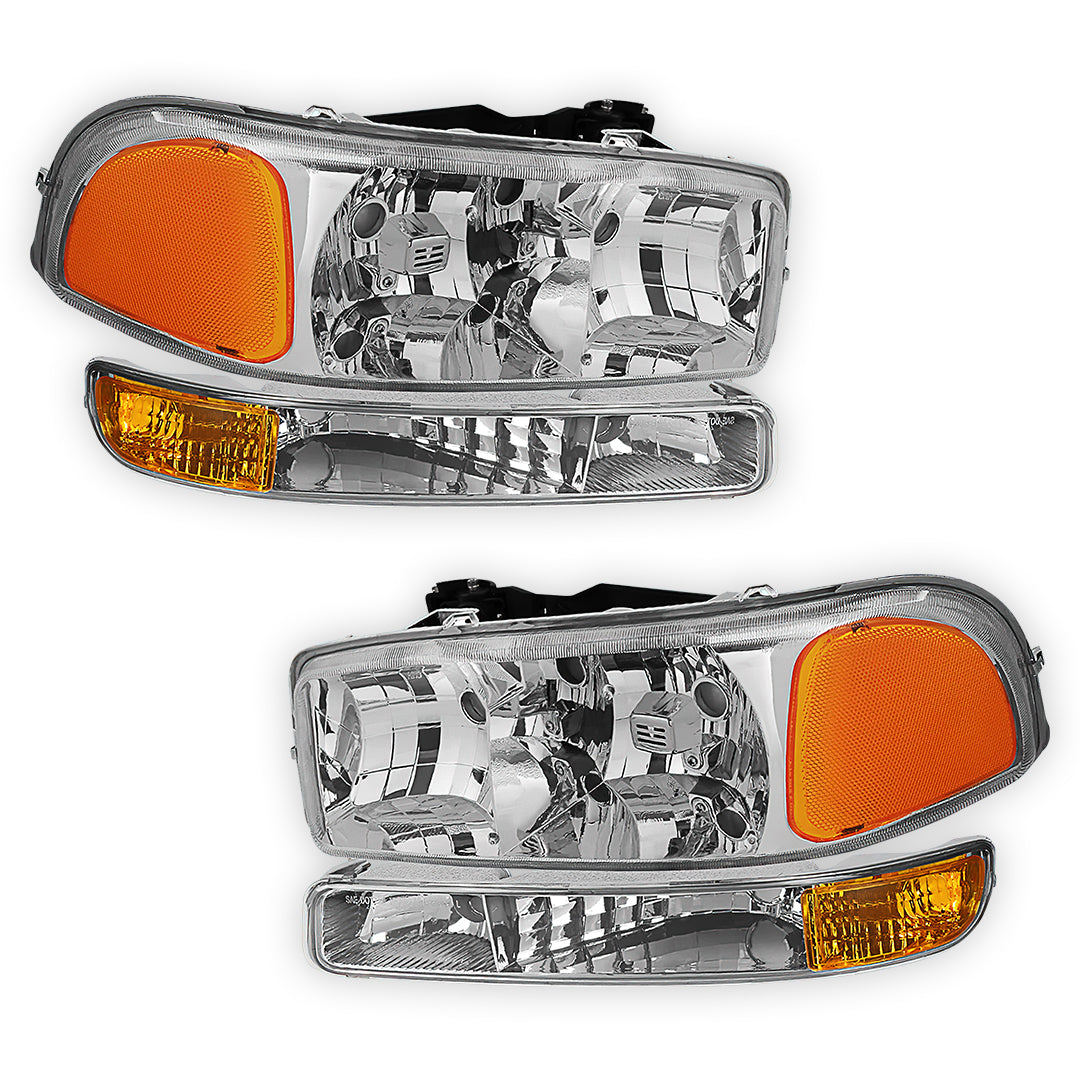 GMC Sierra 1500 SLE / SLT (1999 - 2007) Replacement Headlights and Bumper Lights LH + RH