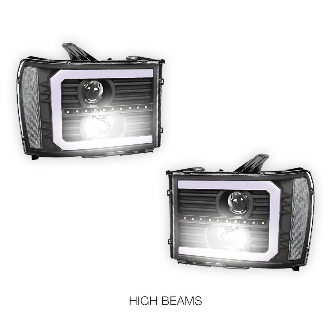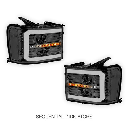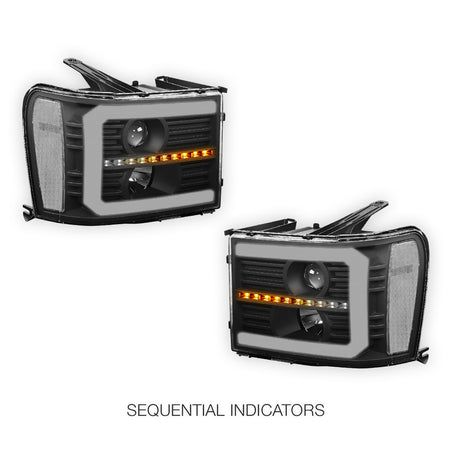 GMC Sierra 2500 Denali / SLE / SLT (2007 - 2014) LED DRL Sequential Signal Projector Headlights LH + RH