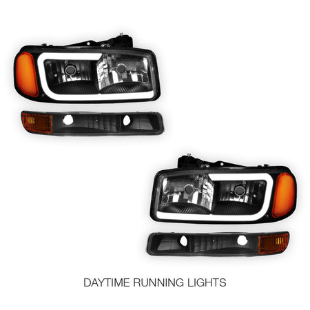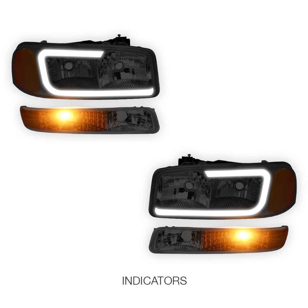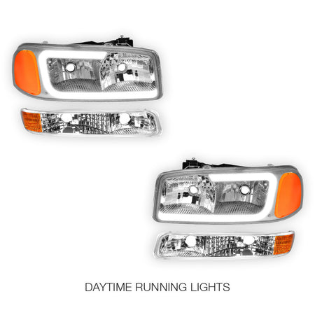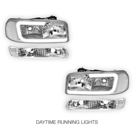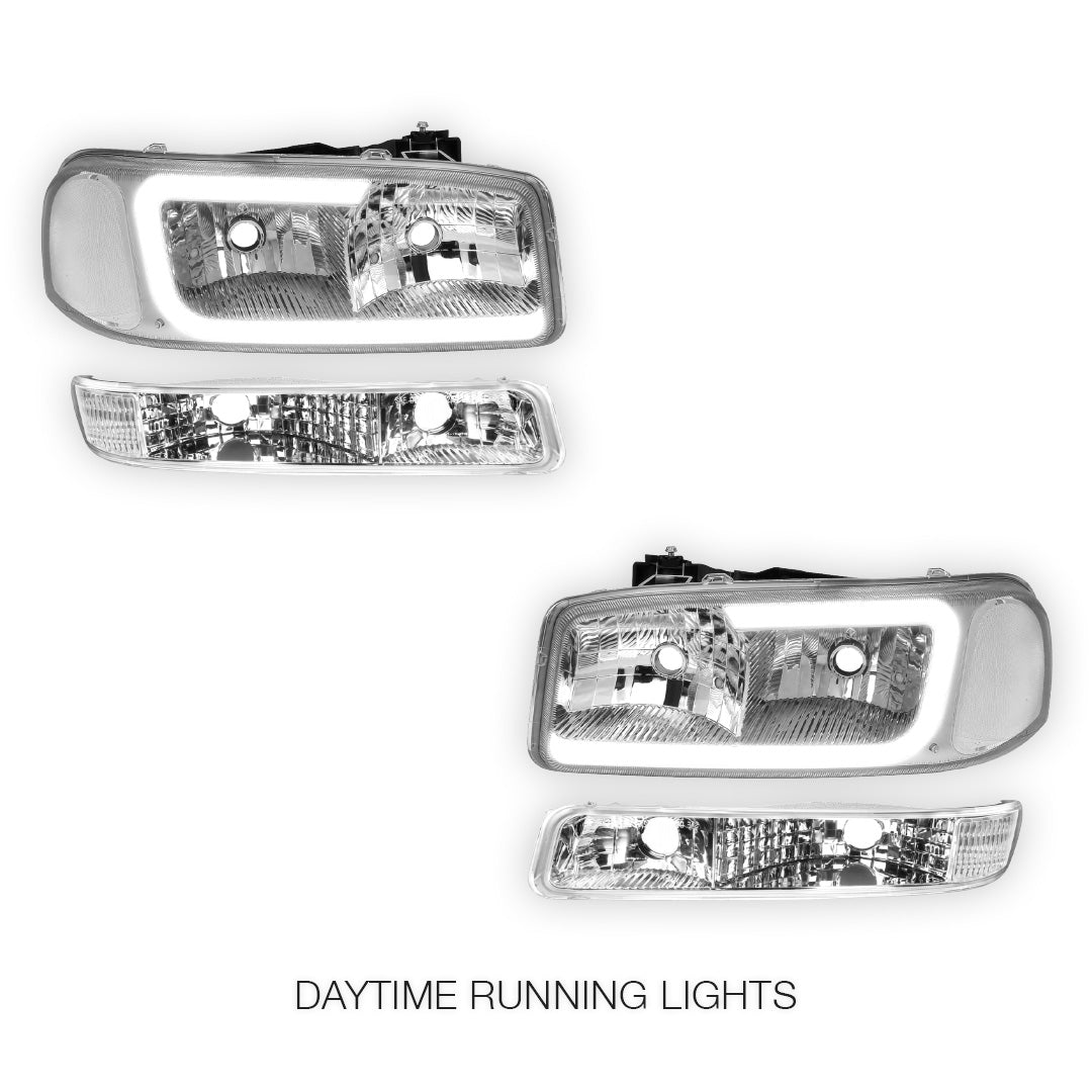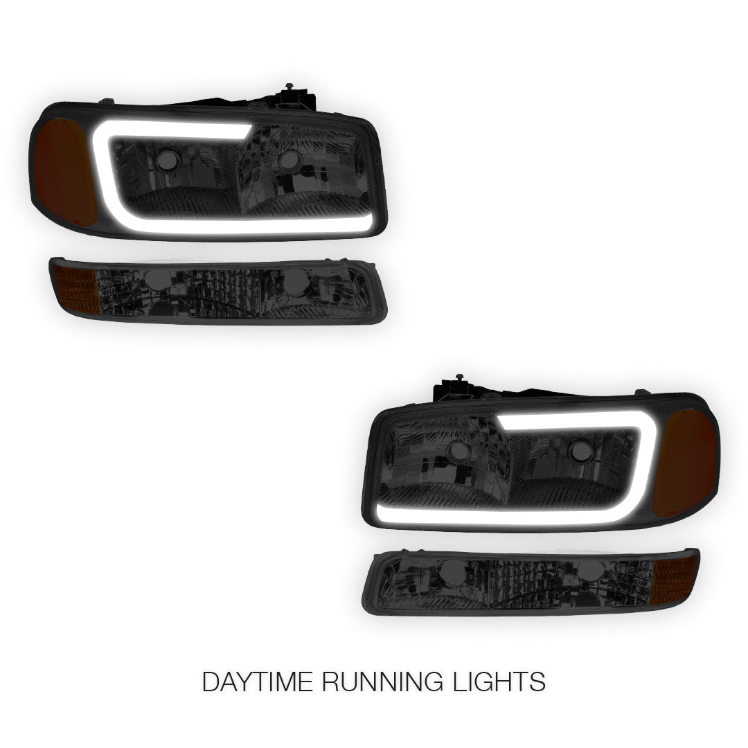 GMC Sierra 2500 HD SL / SLE / SLT (2001 - 2007) Pair LED DRL Headlights LH + RH