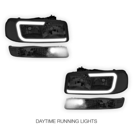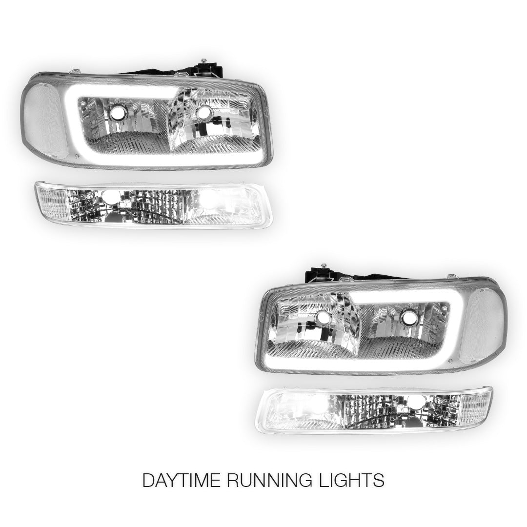 GMC Sierra 2500 SL / SLE / SLT (1999 - 2004) Pair LED DRL Headlights LH + RH