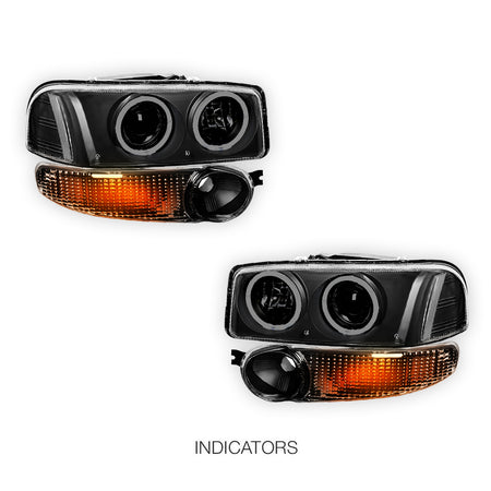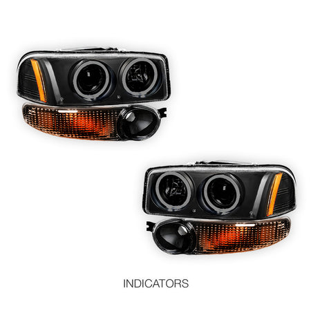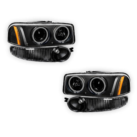 GMC Yukon Denali (2001 - 2006) Black Dual Halo Projector Headlights LH + RH