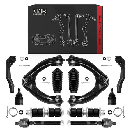 - 12 Pcs. Front Suspension Kit (LH + RH): Comes with complete upper control arms, lower ball joints, inner & outer tie rod ends, front sway bar links and tie rod boots & bellows for a full front-end rebuild of your vehicle.