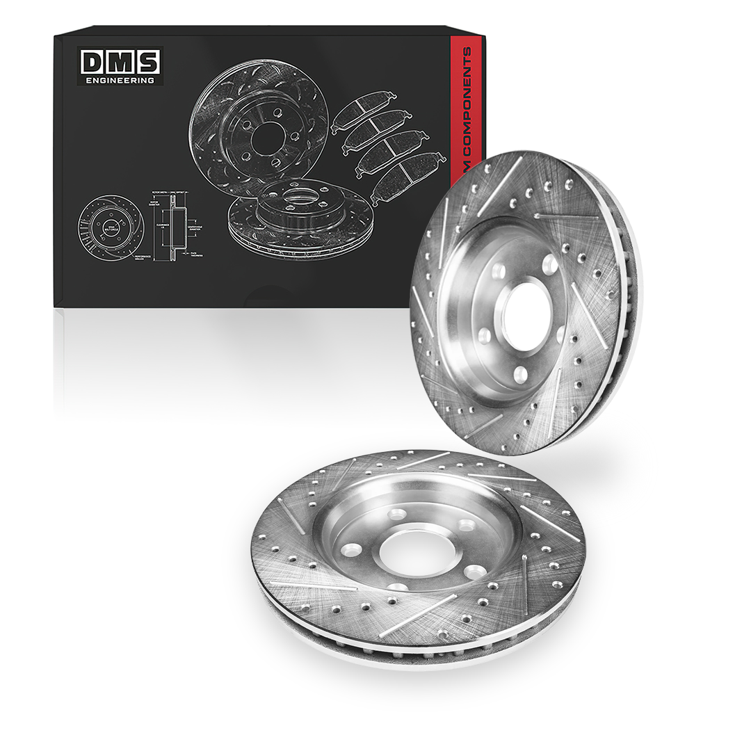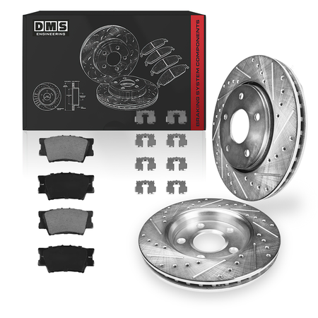 - Front and Rear Drilled and Slotted Brake Rotors and Brake Pads: LH + RH