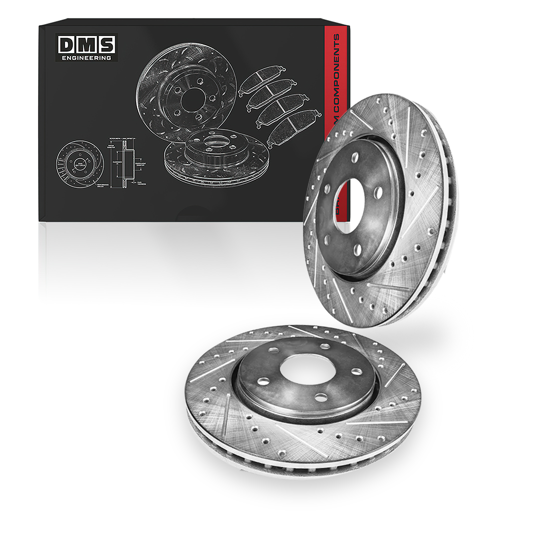 - Front and Rear Drilled and Slotted Brake Rotors and Brake Pads: LH + RH