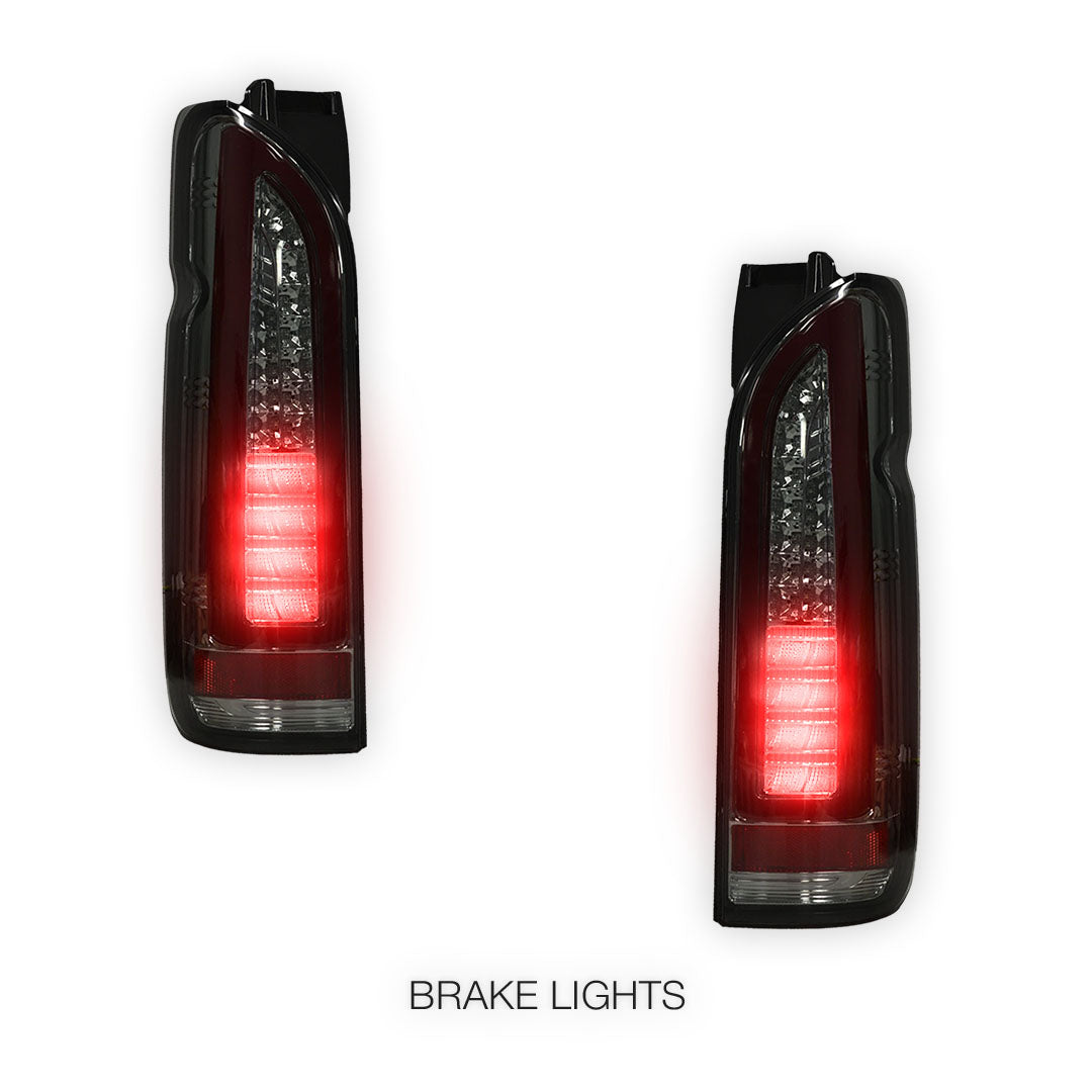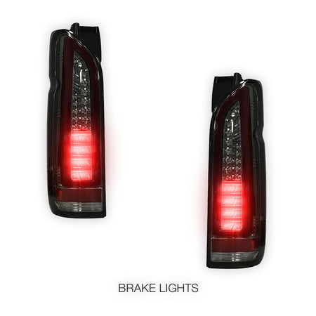 Toyota HiAce H200 (2005 - 2018) Smoked Black Full 3D LED Stripe Tail Lights LH + RH