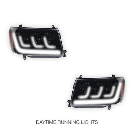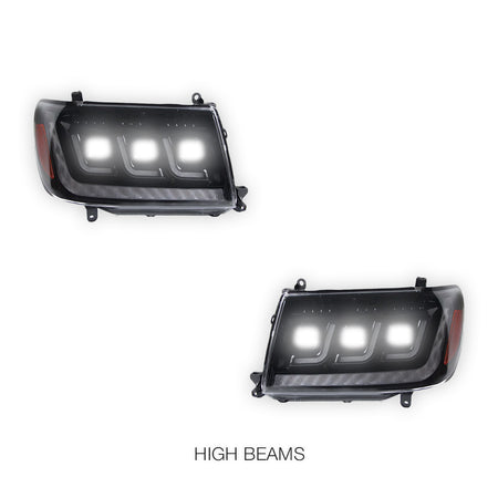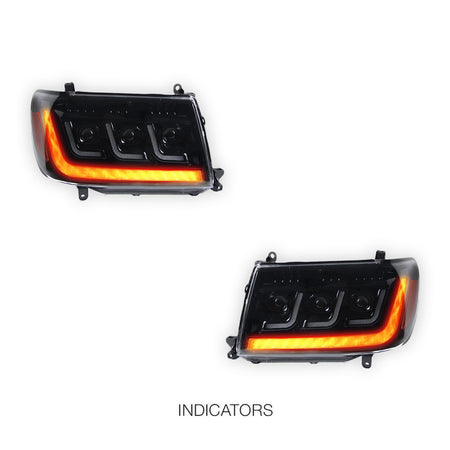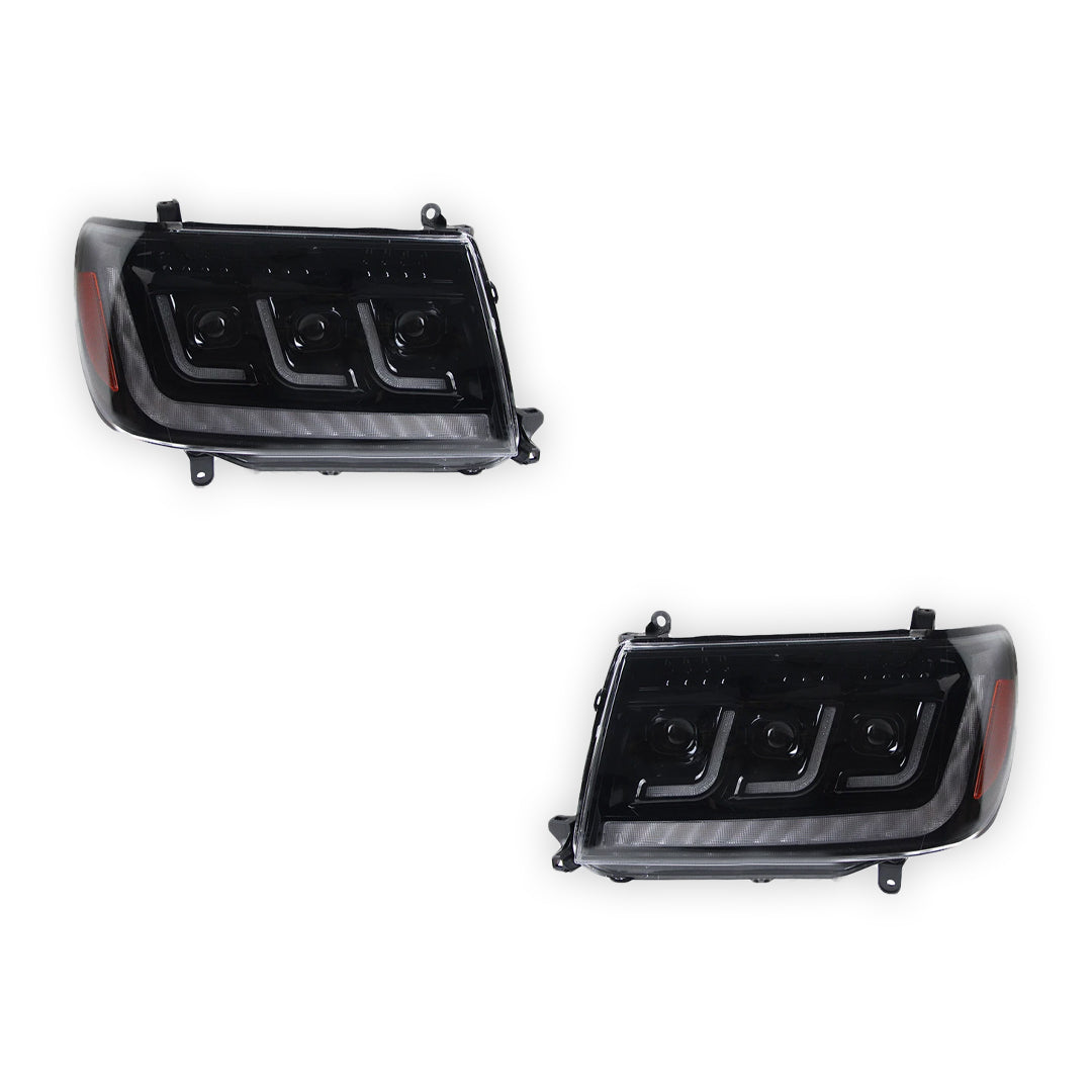Toyota LandCruiser FZJ100 / UZJ100 (2006 - 2007) LED DRL Chrome Projector Headlights LH + RH